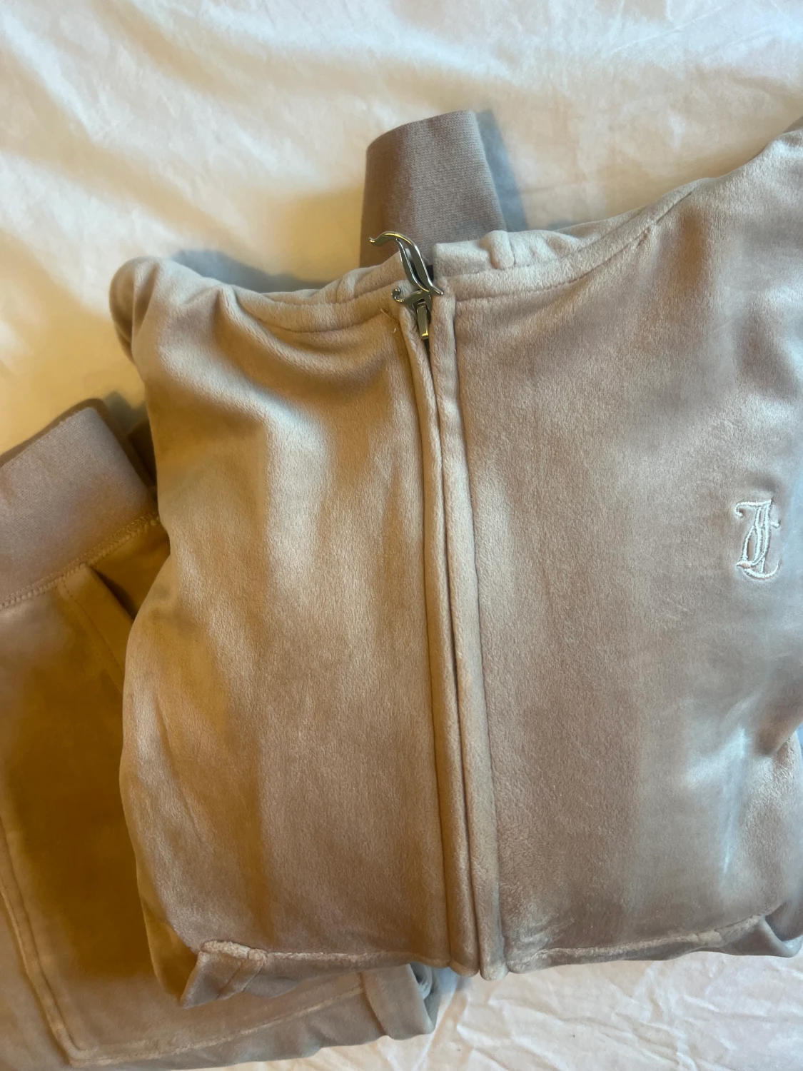 Säljer mitt nästintill oanvända juicy set i en beige/rosa färg. Pris kan diskuteras :) Byxorna är i stl S Tröjan är i stl M