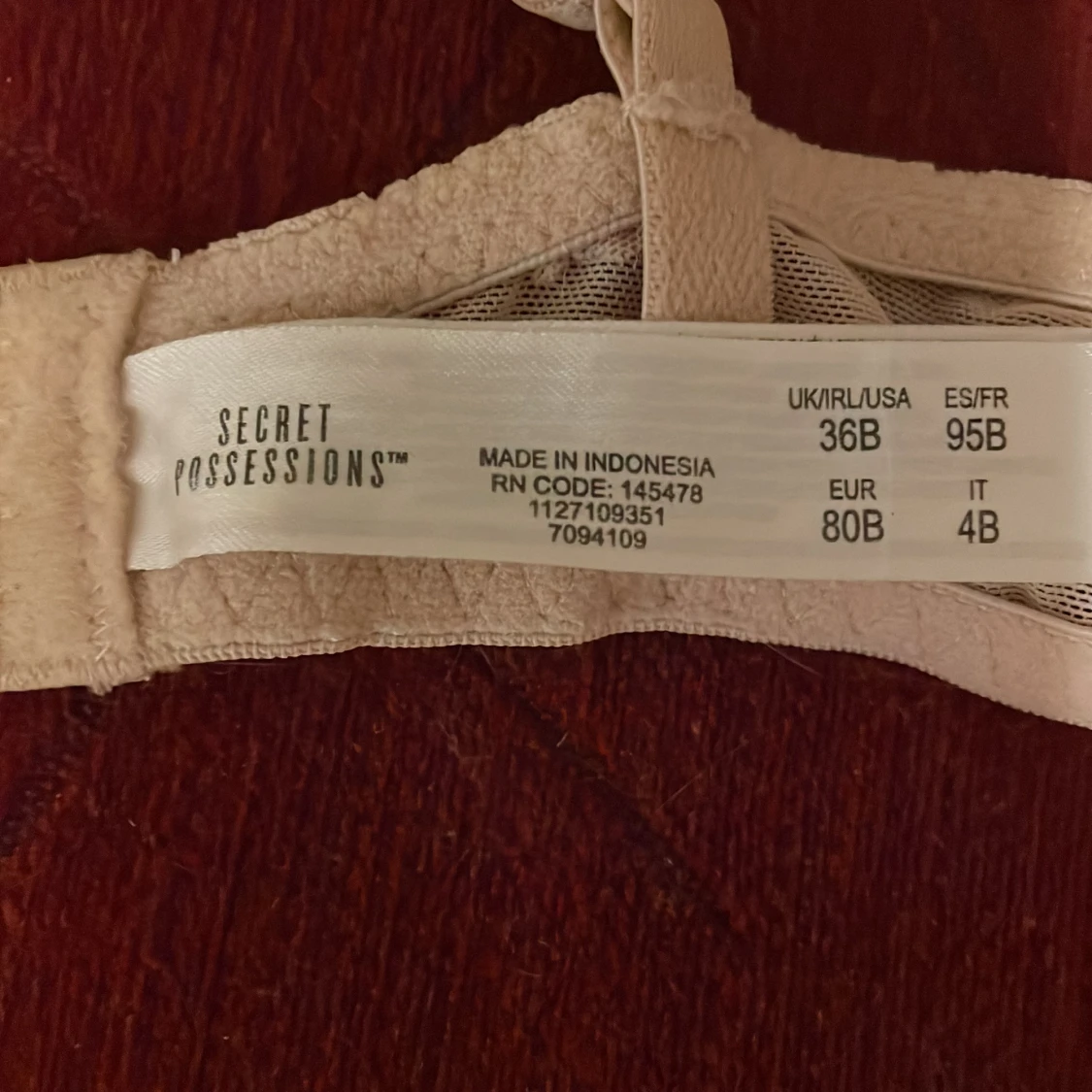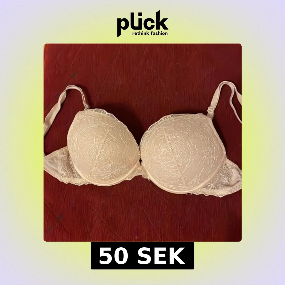 Säljer en elegant beige push-up bh från Secret Possessions med vacker spetsdetalj. Bh:n har justerbara axelband och en bekväm passform. Storlek 80B men ganska stor i storleken.