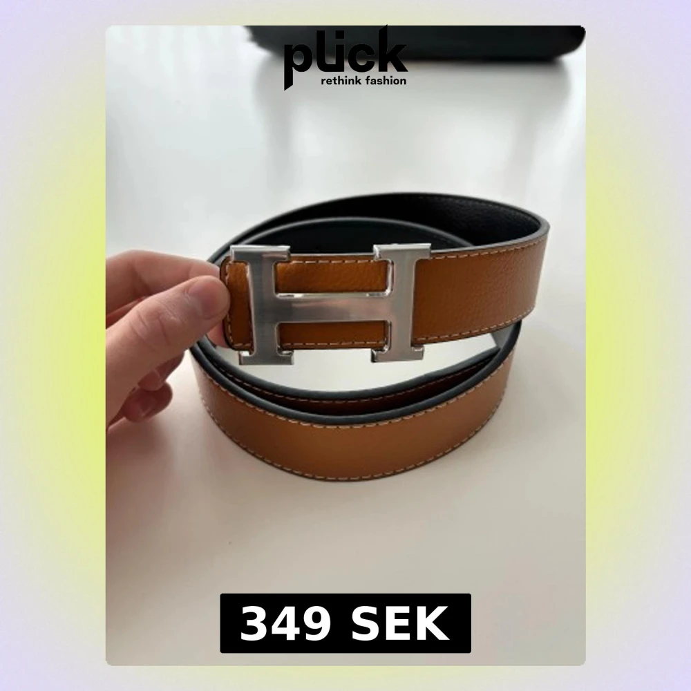 Stilrent bälte med H-spänne. Reversable vilket betyder att man kan välja mellan svart och brunt. Helt oanvänt. Hör gärna av dig vid frågor eller funderingar
