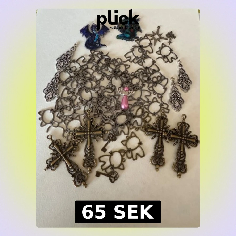 Alla på bilden ingår i paketet Säljer av lite berlocker och smyckestillbehör till bra priser på sånt vi inte använder för att göra smycken längre . Inget är äkta guld/silver Fråga gärna om storlek