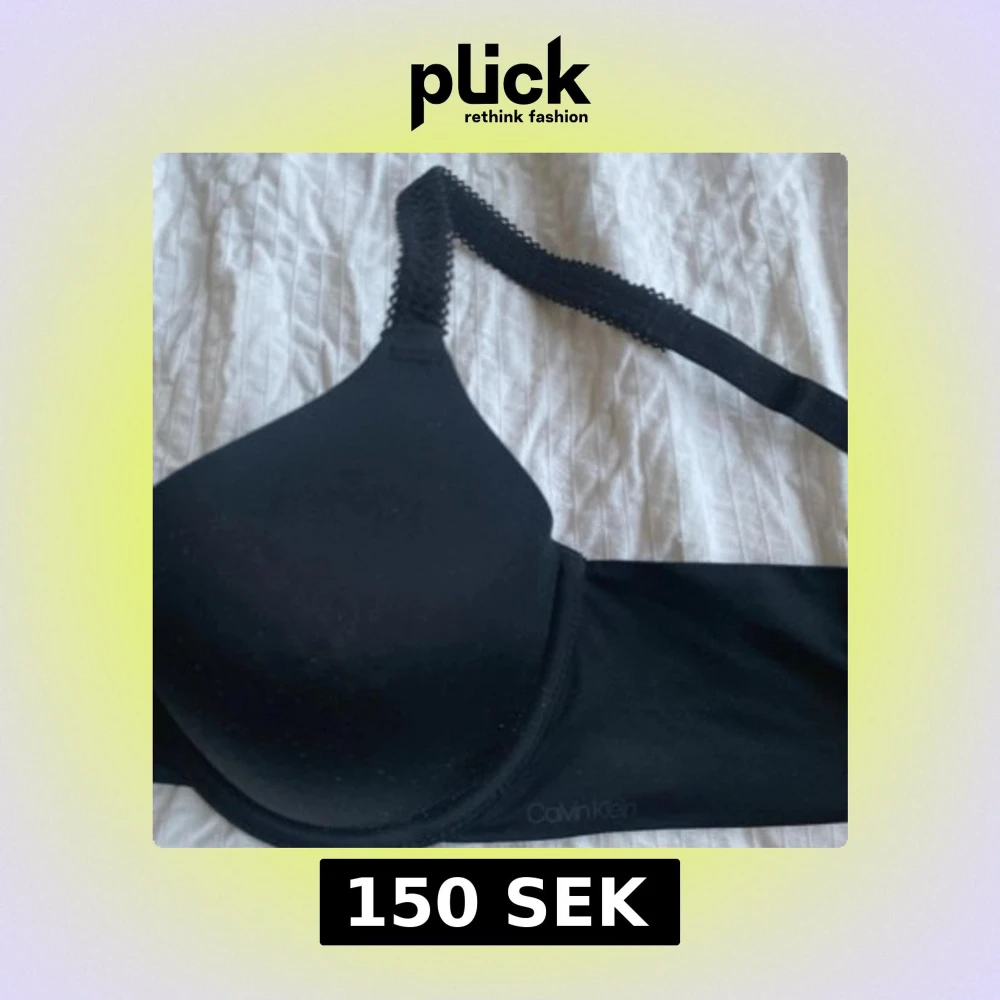 Svart bh från Calvin Klein med vadderade kupor och smala axelband med dekorativ kant. Mjuk och stretchig modell som ger bra stöd och komfort. Perfekt under t-shirts och toppar. Står ingen storlek men skulle säga 65b