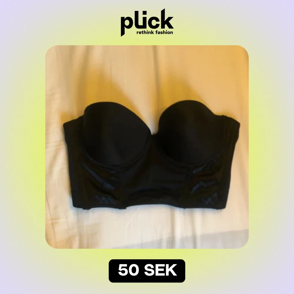 En svart bh utan axelband. Den har lite gummi som håller dem uppe och man kan även sätta i axelband om man vill, men jag har tappat bort de som kom med till denna så det får man stå för själv. Har aldrig använt den själv men har fått den begagnad