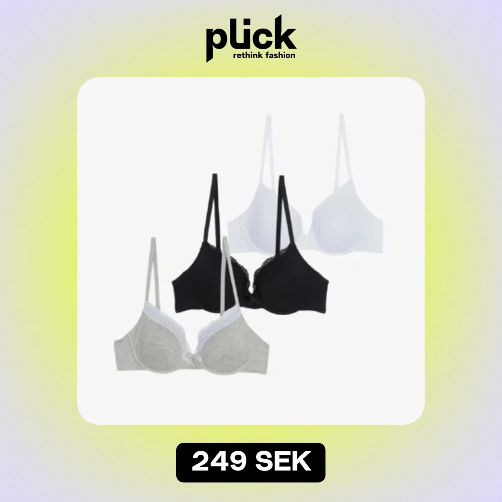 Cute bras with lace and bows in three different colours. They’re the cup size C and have tried on one of them once. Turns out they were too small.