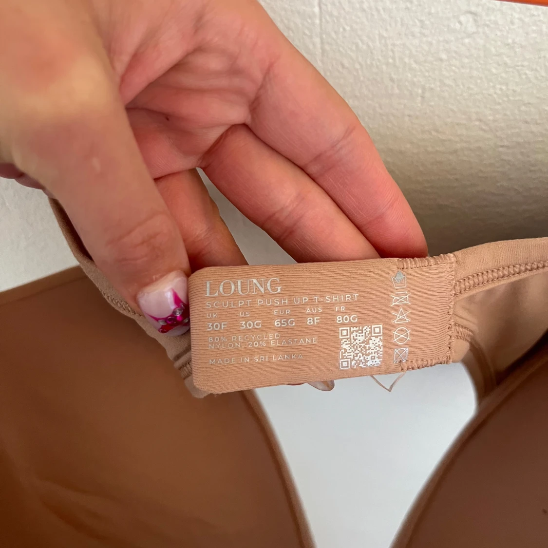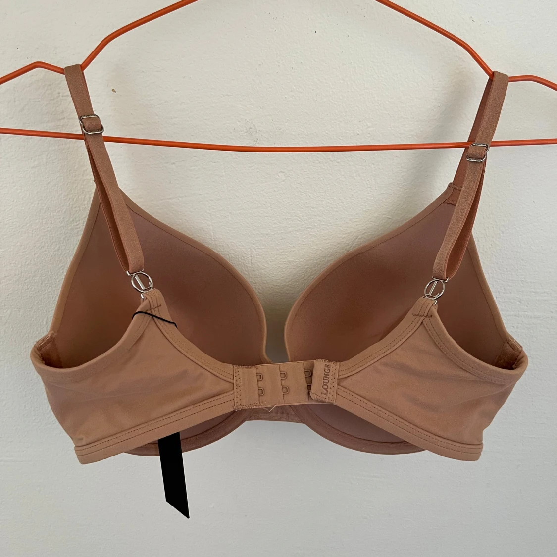 Aldrig använd! Säljer en beige pushup tshirt-BH från Lounge. Tillverkad av 80% återvunnen nylon och 20% elastan för en mjuk och stretchig känsla.