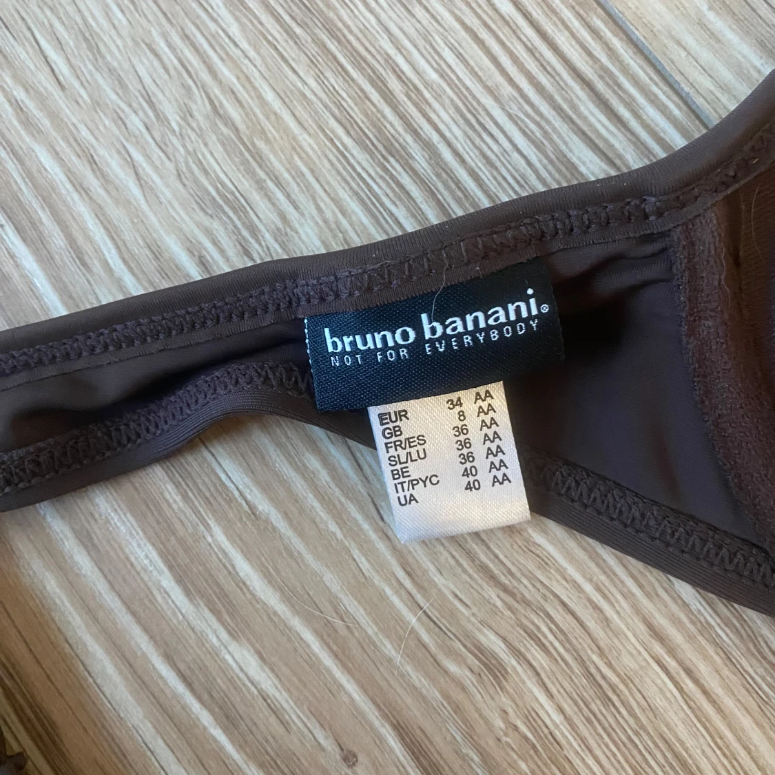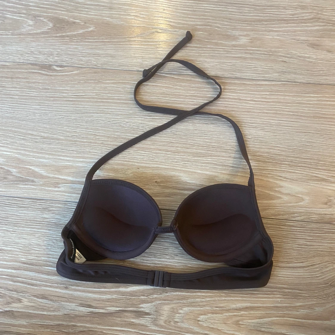 Snygg brun bikiniöverdel från Bruno Banani med glittriga paljetter på kuporna. Halterneck-modell med knyt i nacken och klassisk knäppning bak. Perfekt för dig som vill sticka ut på stranden!