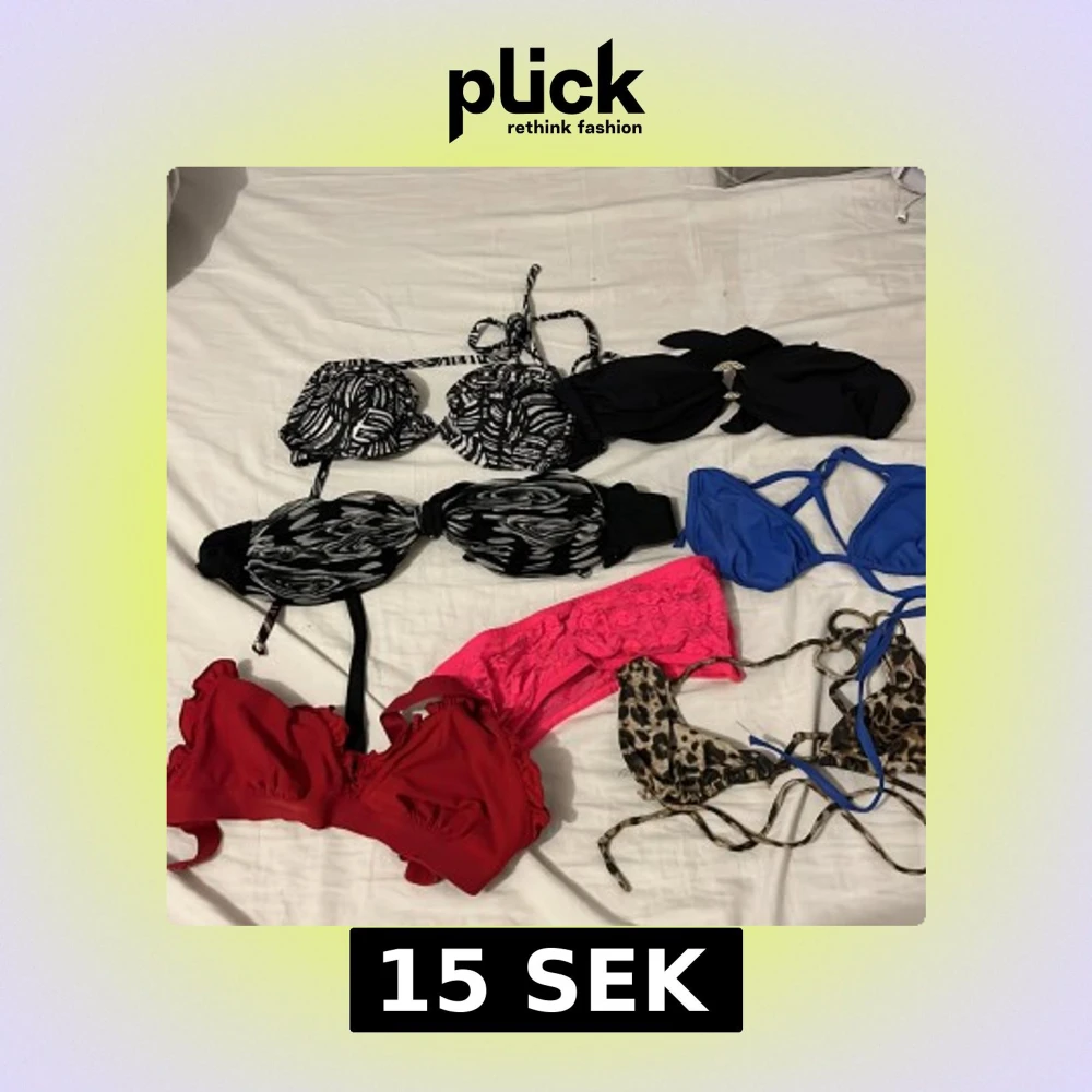 Blandade bikinitoppar i storlek S och XS. Alla för 100 och en för 15.