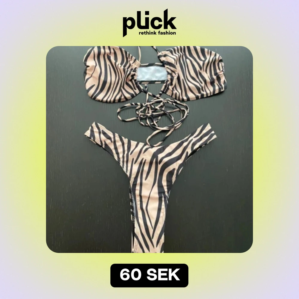 Oanvänd zebra bikini (string) Med passande kjol till Strl M men sitter mer som S Köpare står för frakt Bilder med bikini på skickas inte