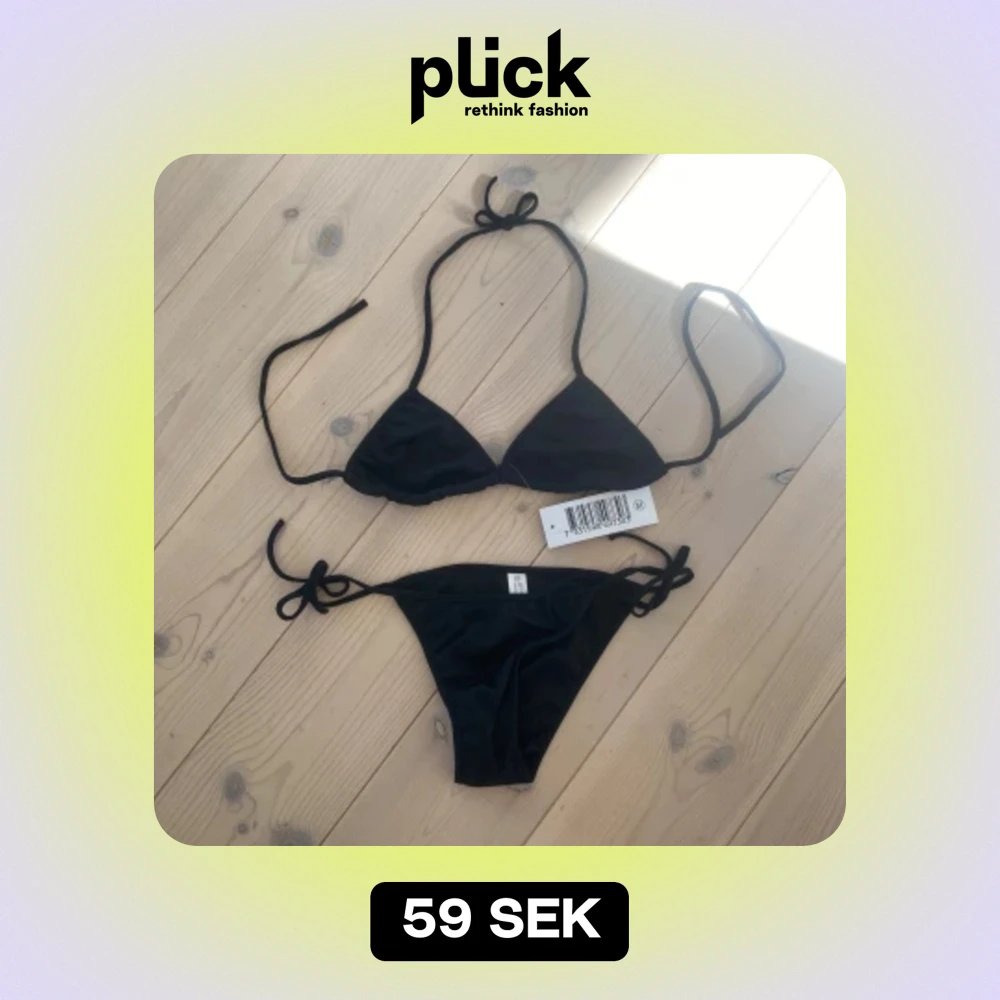 Superfin, helt oanvänd svart bikini, jag säljer den då det är italiensk storlek M och inte europeiska M; det är alltså mer som storlek XS ✨💗🪩💕