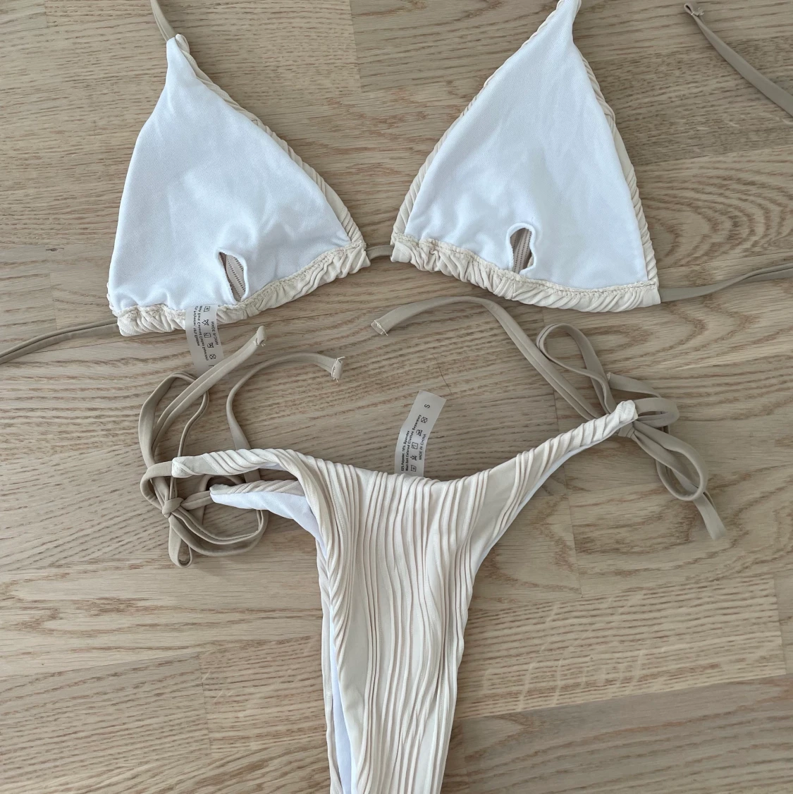 Beige triangelbikini, aldrig använd. Underdelen i stl S & överdelen i L 🌷 150kr inkl frakt.
