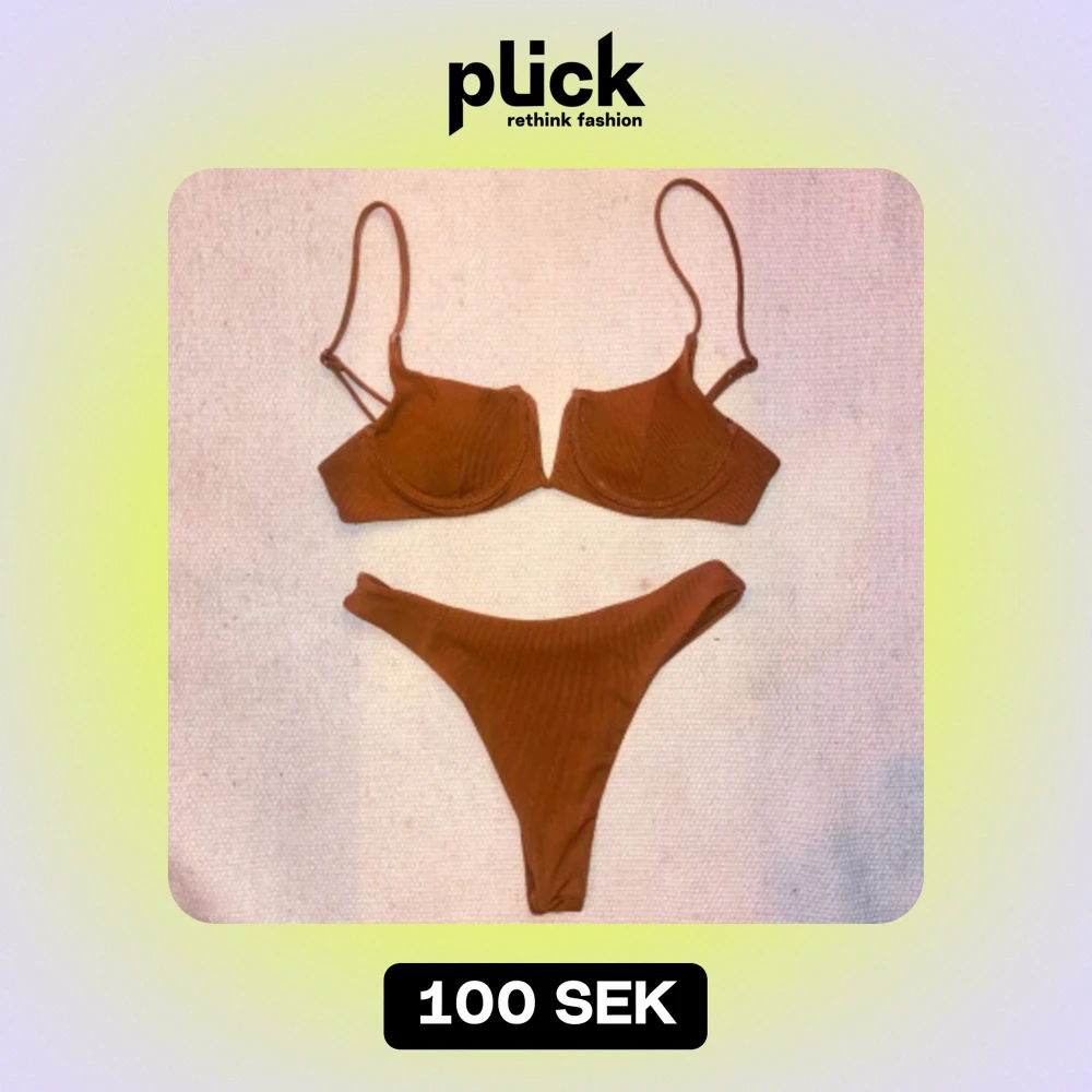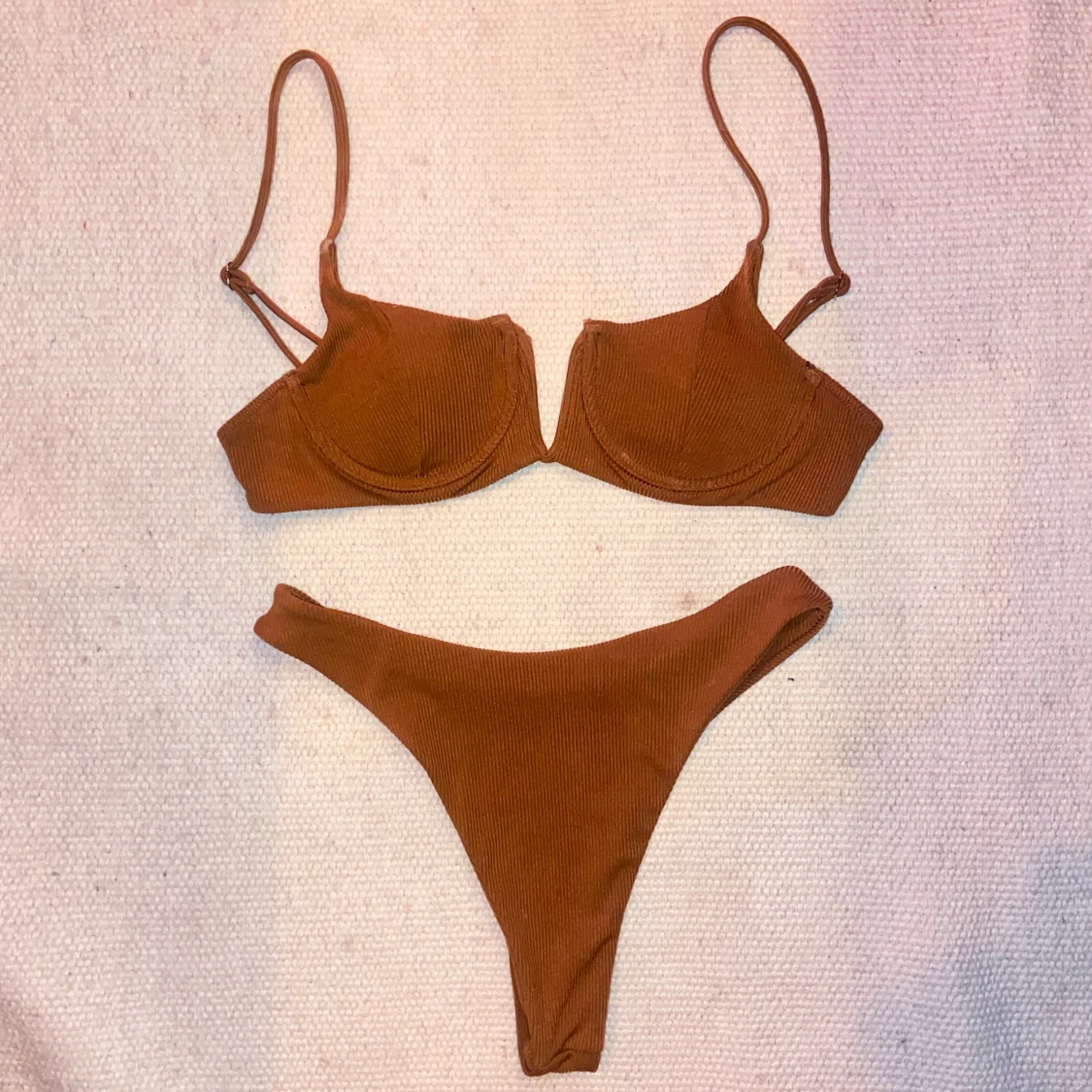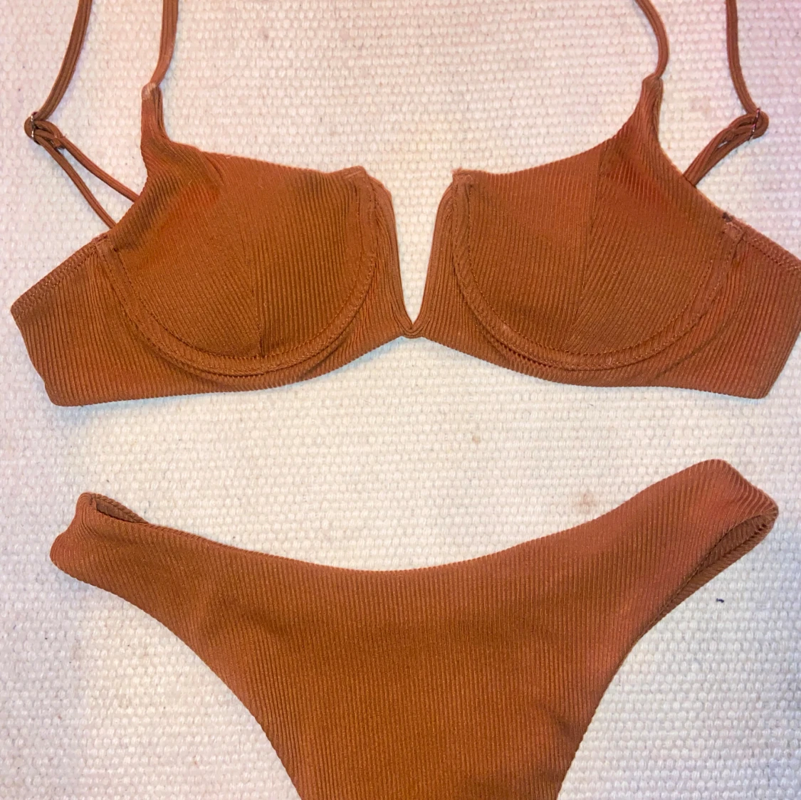 Bikini i ribbat tyg. Knappt använd! Vadderade kupor och högmidjade trosor.
