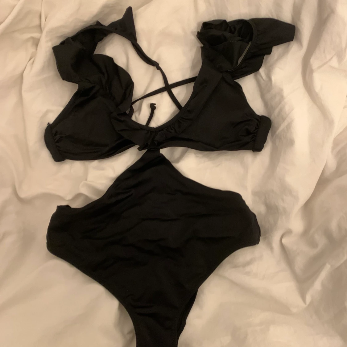Slutsåld svart baddräkt med as snygg knytning i ryggen, som enbart är testad ❣️ säljs också i gult, titta bland mina andra annonser