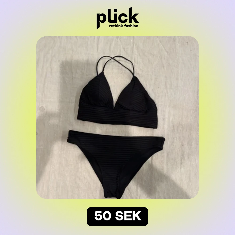Oanvänd fin svart bikini från HM. Stlk 36. Smala reglerbara korsade band. Lätt vadderade kupor.