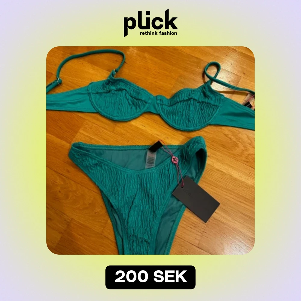Helt ny bikini med tagg kvar, hög benskärning i ett skimrande material 👙