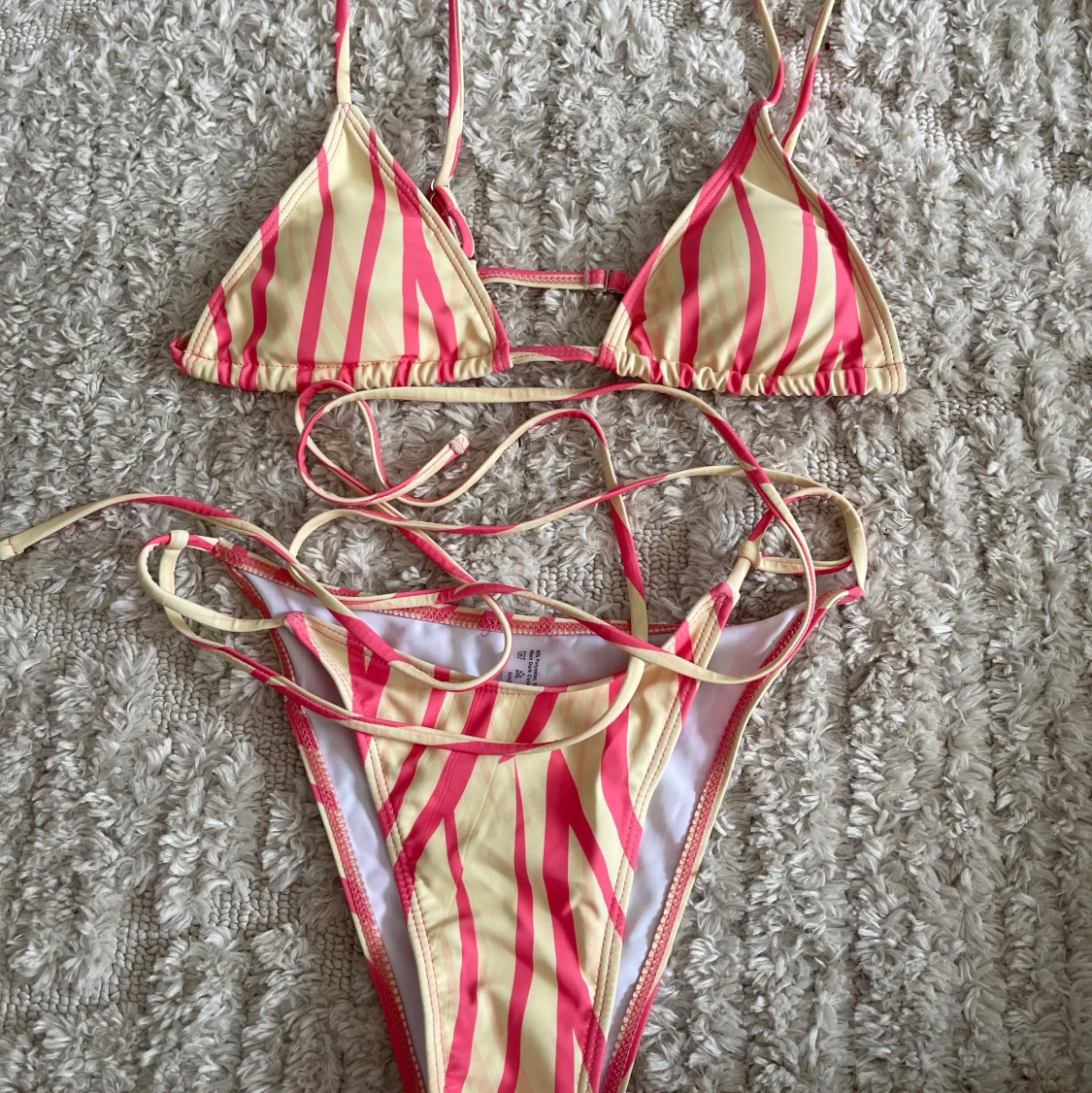 Jättefin mönstrad bikini med snören man knyter runt kroppen, se sista bilden för visning (LÅNAD BILD)! Endast provad