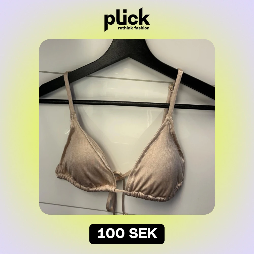 Guld beige bikini topp från H&M Storlek 38💕 taggen ör bortklippt men har aldrig använt den, gillar inte guld färgen (är en silver människa)