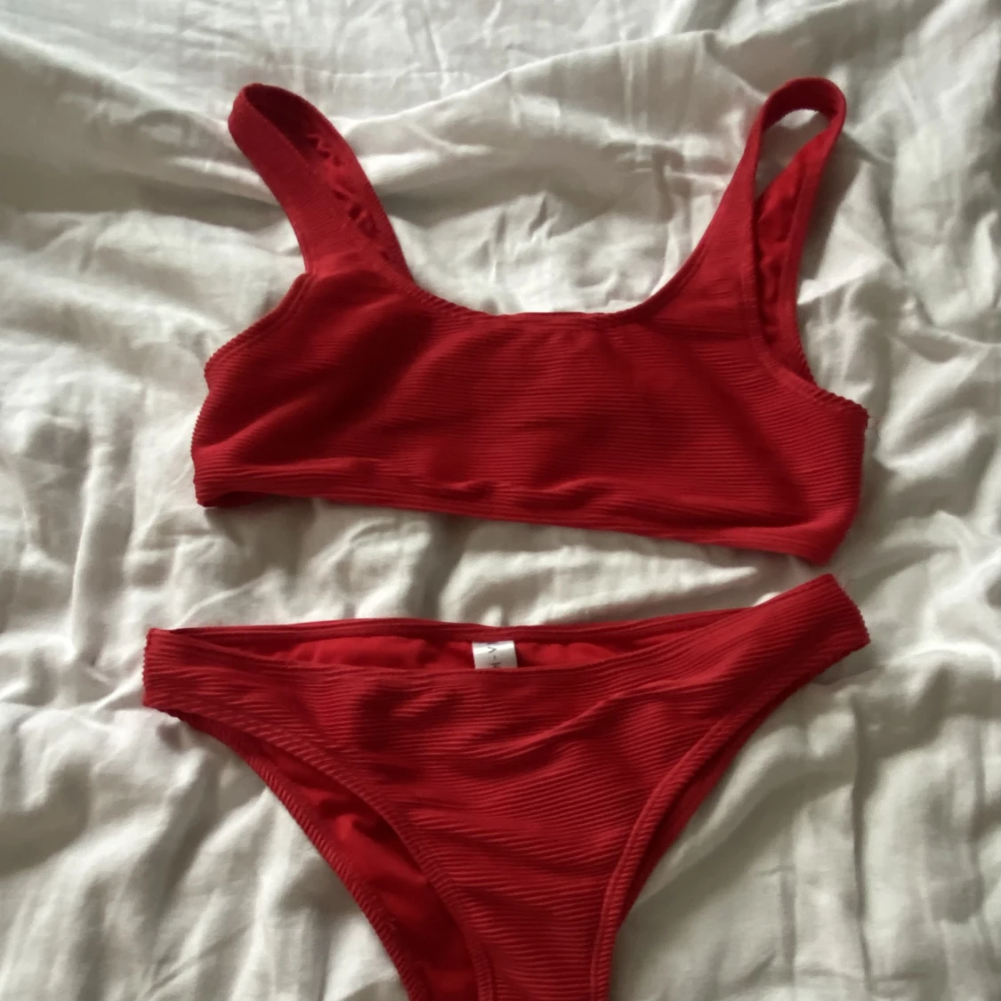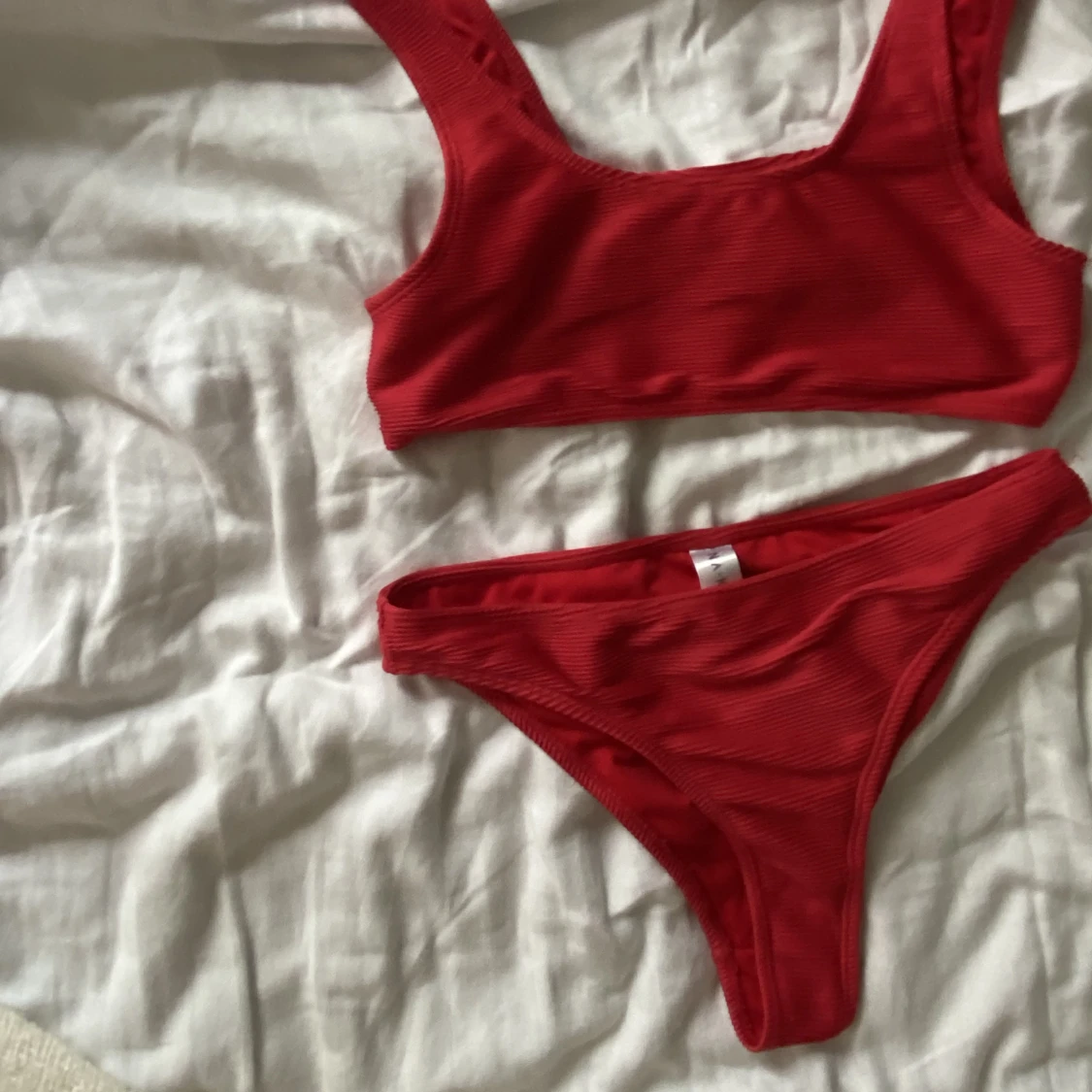 Röd bikini set från NA-KD. Använd kanske en gång, är för liten för mig.