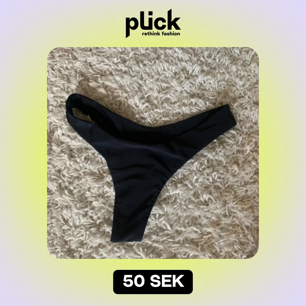 Svart bikiniunderdel i fint skick och aldrig använd🩷den är i fint skick och köpt här på plick🩷stl är oklart men skulle säga att den passar xs/s
