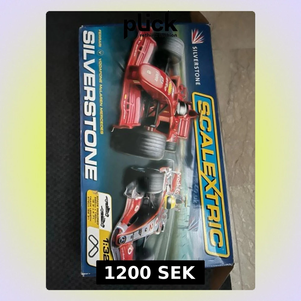 Scalextric Silverstone bilbana i skala 1:32 med Ferrari och Vodafone McLaren Mercedes F1-bilar. Banan har en längd på 676 cm och kräver en yta på 280 x 140 cm. Perfekt för racingfans som gillar fartfyllda spel och klassiska slotcars.
