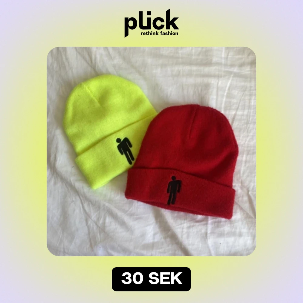 super fina billie eilish beanies med blohsh på! säljer då jag har ännu fler och använder inte alla, köpta för 5-4 år sedan men fortfarande bra skick. Den röda är officiell. 30kr styck eller 55kr för båda!