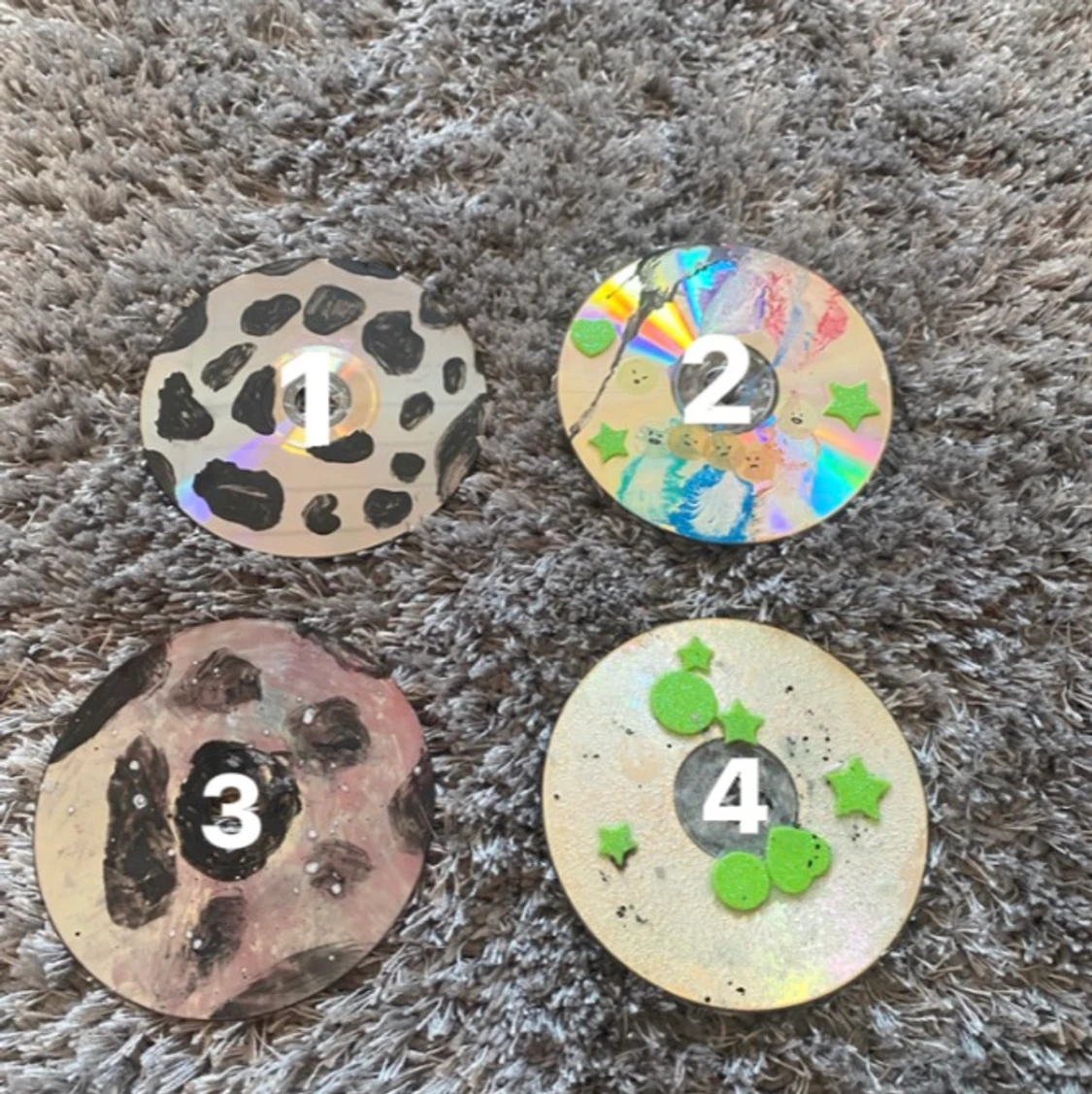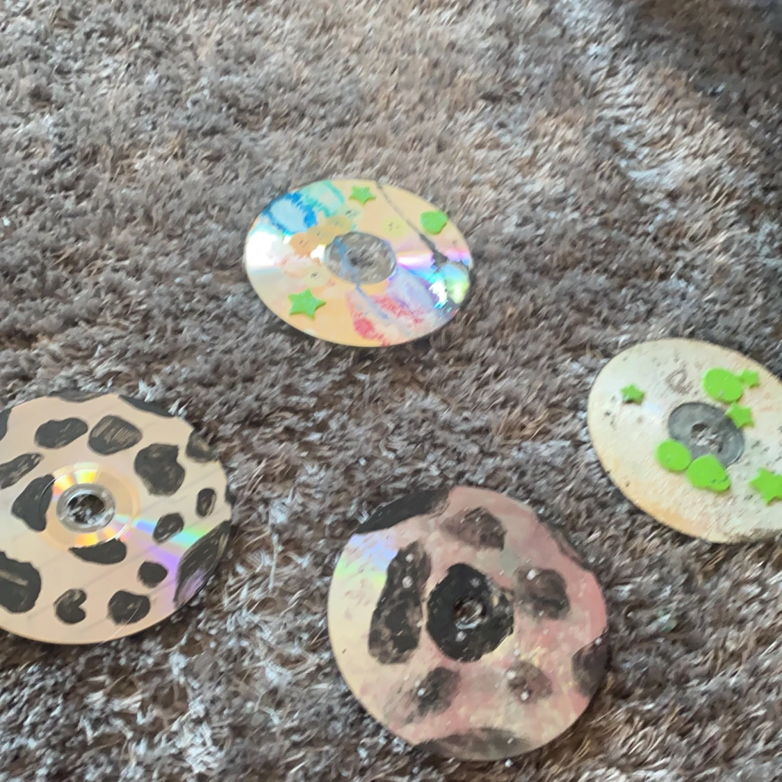 Här säljer jag målade cd skivor (om du är intresserad och vill köpa så skriv vilket nummer som du ser på första bilden;) en för 15