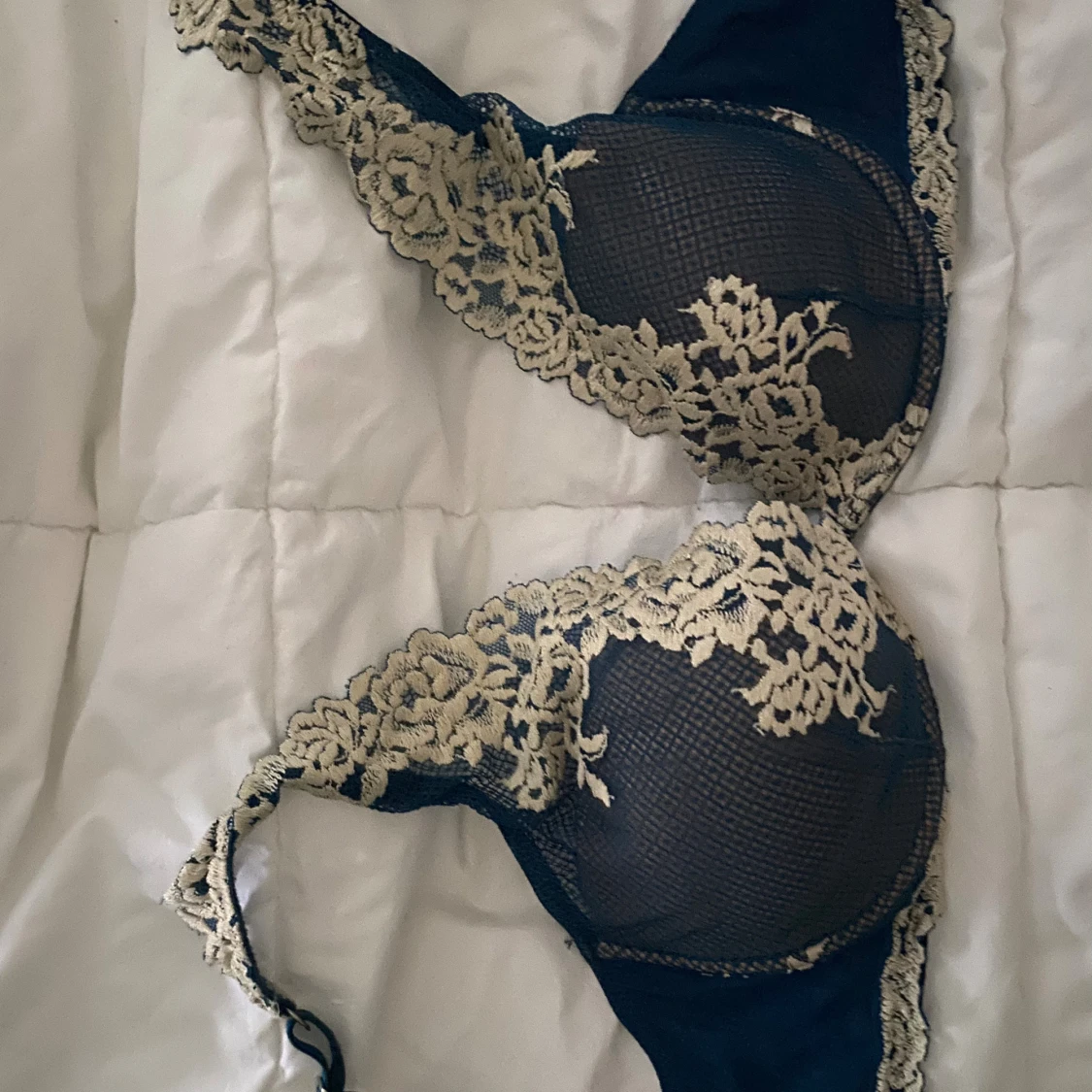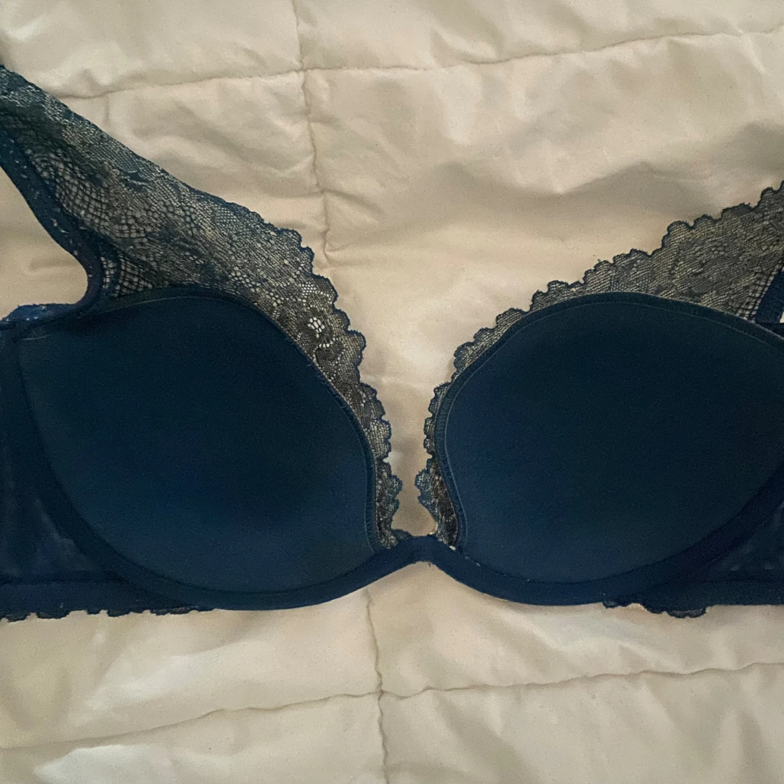 Säljer en snygg blå balconette-bh från Intimissimi med ljus spets i blommigt mönster. Bh:n har vadderade kupor och tunna axelband. Materialet är mjukt och stretchigt med fina spetsdetaljer som ger en lyxig känsla. Perfekt för dig som vill ha något extra under kläderna.