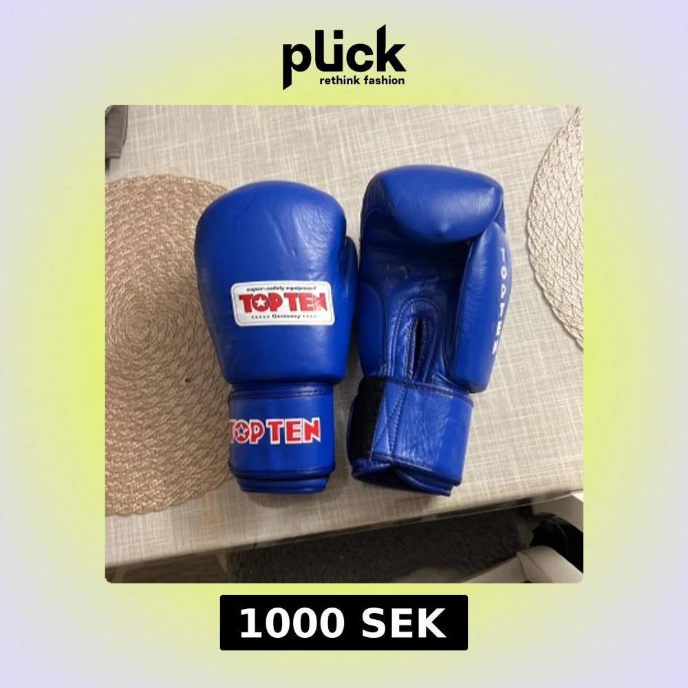 Säljer ett par blå boxningshandskar från Top Ten. Handskarna har en klassisk form med bred kardborrestängning och tydlig logga på ovansidan och handleden. Perfekta för dig som vill träna boxning eller kampsport. Handskarna är legitimerade matchandskar och är iba approved vilket menas att de används i matcher. Extremt bra skick. Använd 2-3 träningar. Original pris runt 1500-2000 men säljer för 1000 för att få bort de snabbt. Pris kan sänkas vid snabb affär.