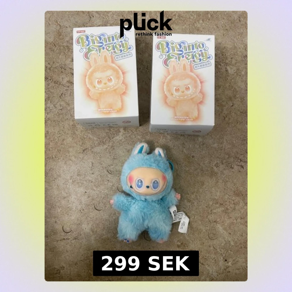 Säljer en gullig blå väst med fluffigt material och söta kaninöron från Pop Mart. Västen har en rund form och är tillverkad i syntetiskt pälsliknande tyg. Perfekt för dig som gillar unika och lekfulla plagg med extra detaljer.