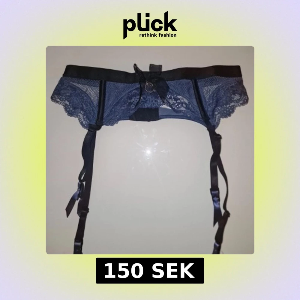 Elegant blå strumpebandshållare från Hunkemöller med spetsdetaljer och justerbara band. Perfekt för att ge en lyxig touch till dina underkläder. 💙 Garderobsrensning så kika gärna på övriga auktioner.