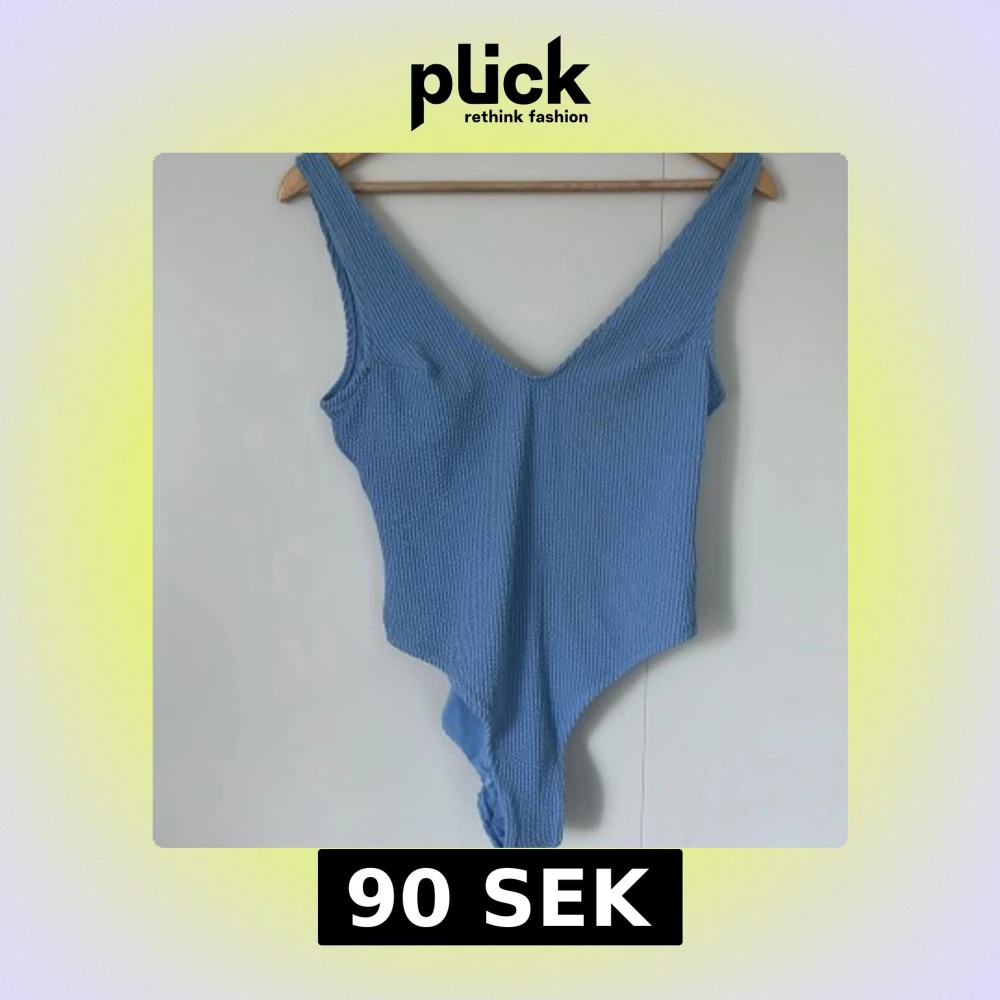 Snygg blå baddräkt med ribbad struktur och djup v-ringning både fram och bak. Modellen har breda axelband och är tillverkad i ett stretchigt material som sitter skönt på kroppen. Perfekt för strandhäng eller poolparty.
