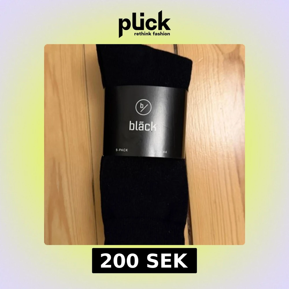 Säljer ett 5-pack klassiska svarta strumpor från Bläck. Strumporna är i en skön blandning av 75% bomull, 22% polyamid och 3% elastan, vilket gör dem både mjuka och stretchiga. Perfekta för dig som vill ha stilrena och bekväma strumpor till vardags. Storlek 40-44.