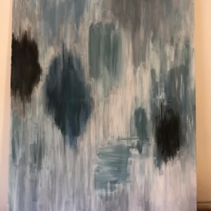 Stor abstrakt tavla i grå-blåa nyanser. 100x70 cm