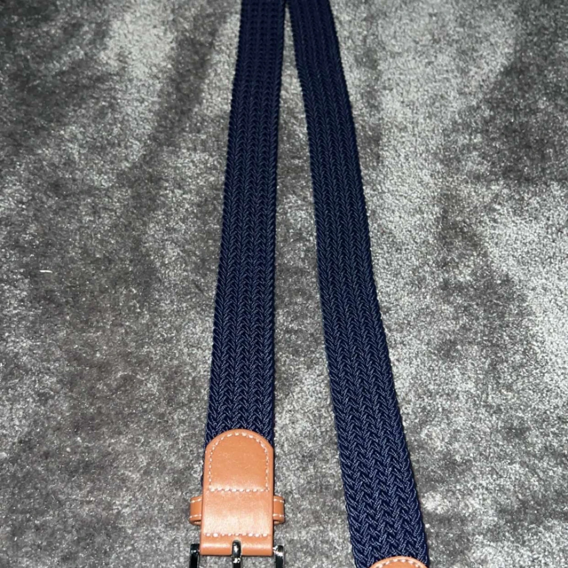 Snyggt blått flätat bälte med bruna läderdetaljer. Perfekt för att ge en stilren touch till din outfit. Bältet har en klassisk design med en robust spänne. FRÅN ONEWEAR