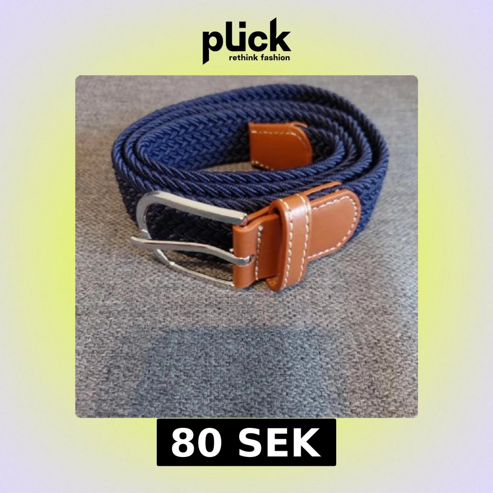Snyggt flätat bälte i blått med bruna läderdetaljer och ett stilrent silverfärgat spänne. Perfekt för att ge en casual look lite extra stil. Passar till både jeans och chinos.