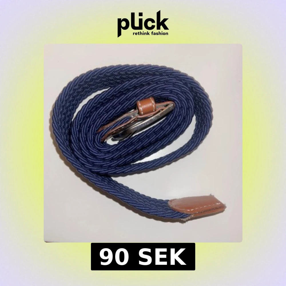 Snyggt flätat bälte i marinblått med bruna läderdetaljer och silverfärgat spänne. Perfekt för att ge en stilren touch till din outfit.