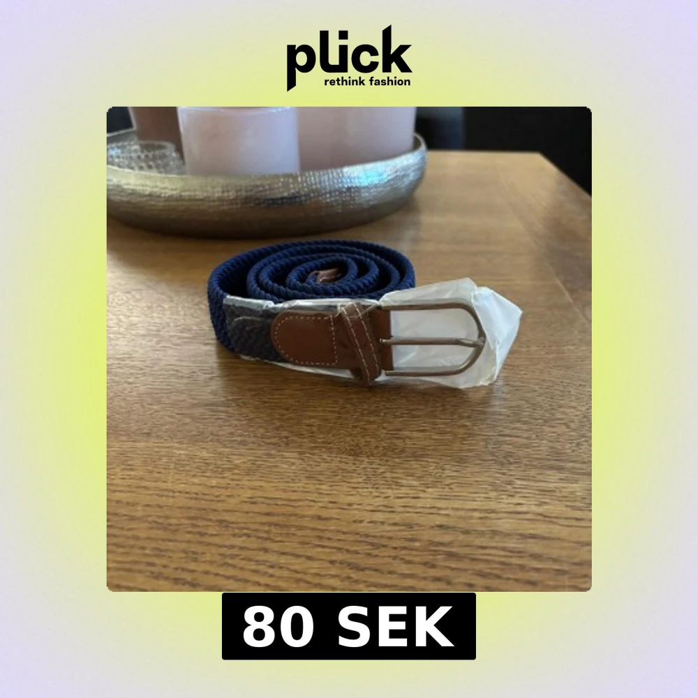 Snyggt blått flätat bälte med detaljer i brunt läder och ett silverfärgat spänne. Perfekt för att ge en stilren touch till din outfit. Bältet är flexibelt och passar olika storlekar.
