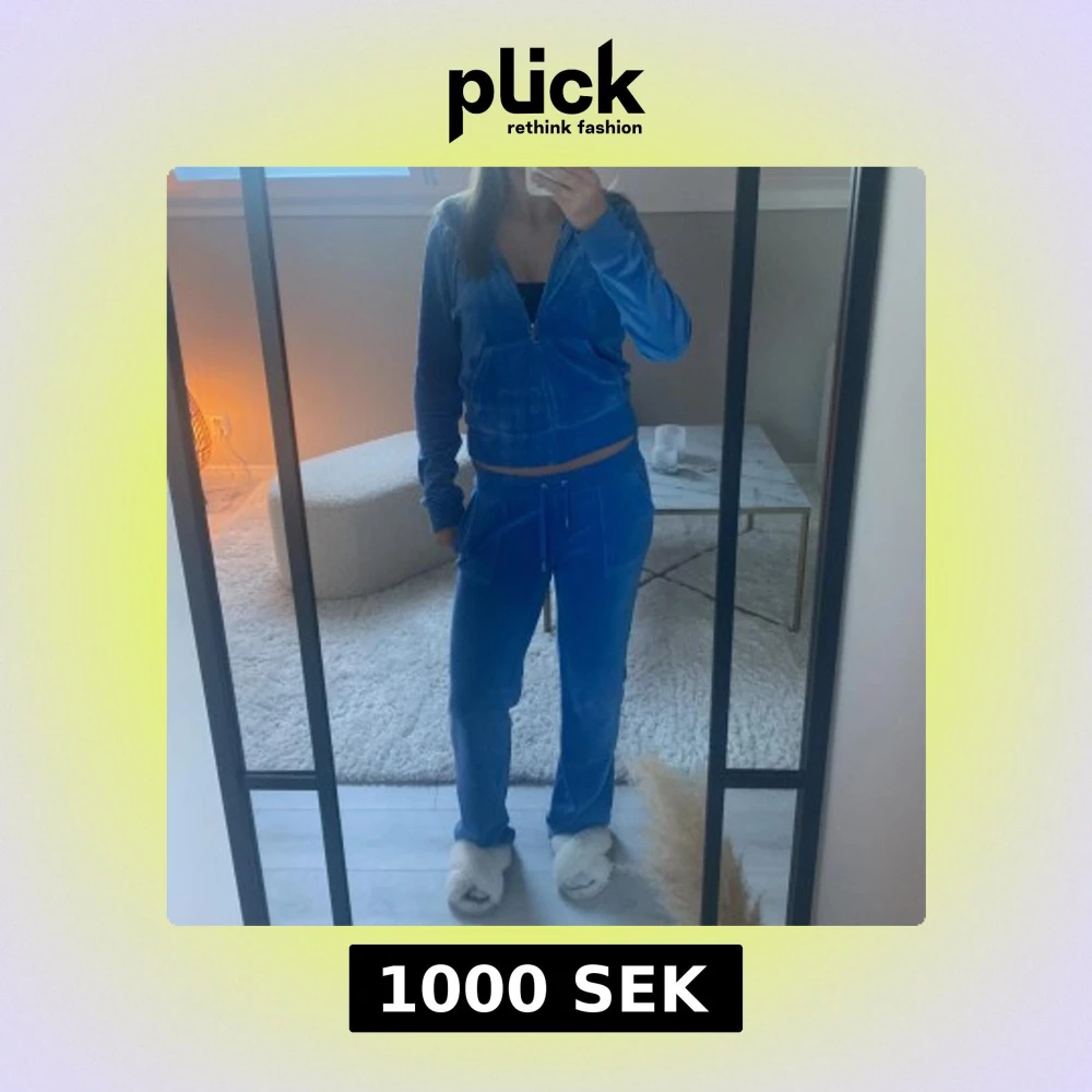 Säljer ett blått set från juciy couture med. Tröjan har långa ärmar och en croppad passform. Perfekt för dig som gillar en mjuk och bekväm tröja och byxa. Byxa storlek S och tröja storlek M.