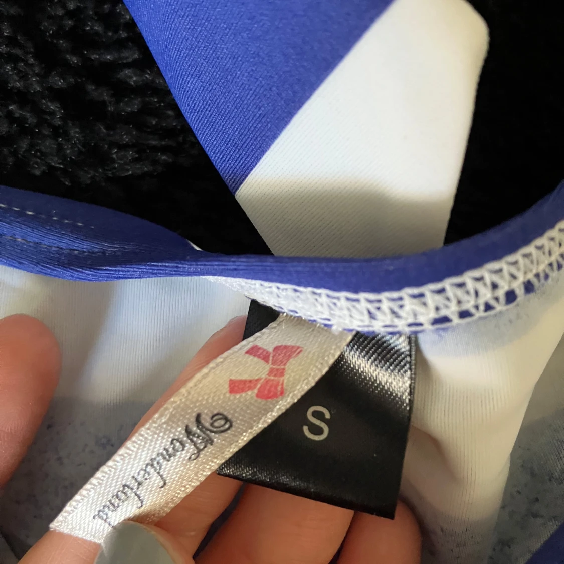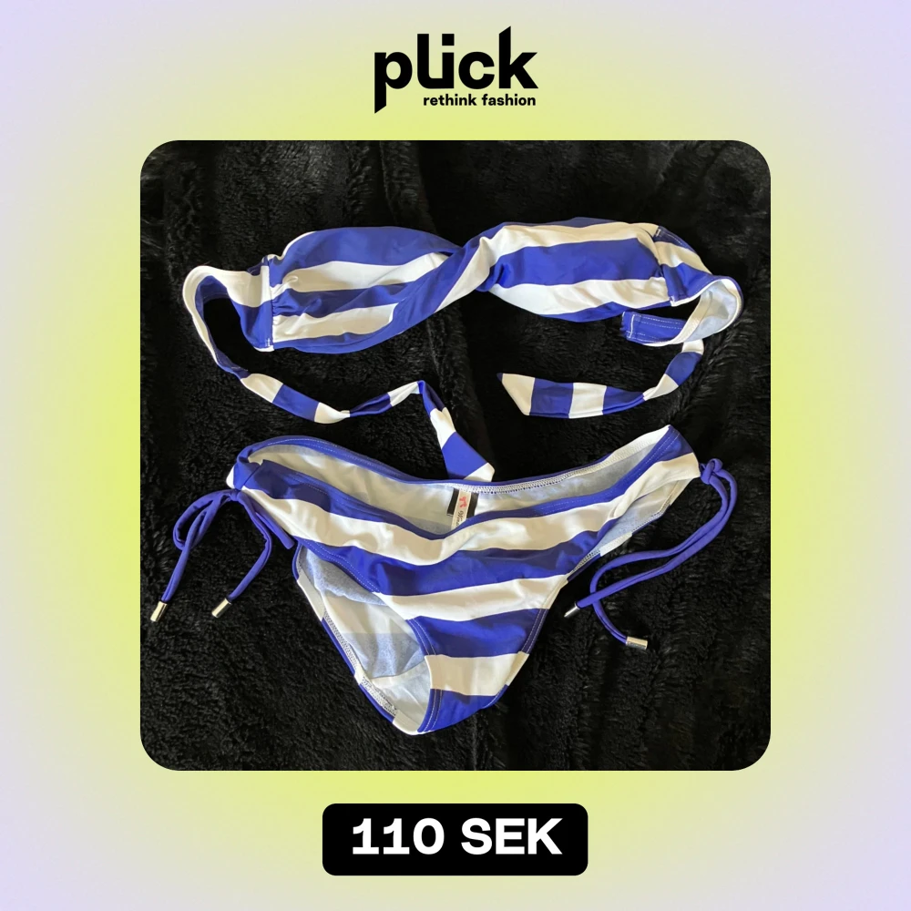 Säljer en superfin blåvit randig bikini från Wonderland. Den har knytband på sidorna och har inget knyte över axlarna.
