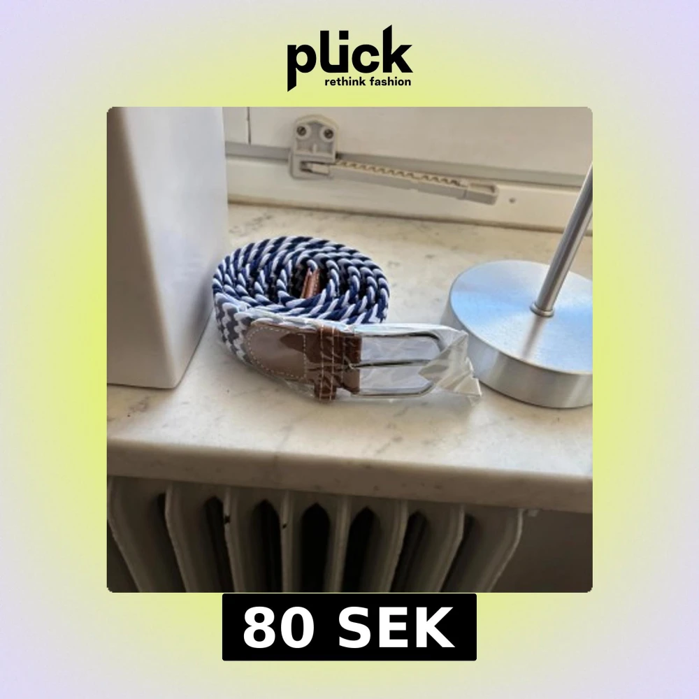 Säljer ett snyggt blåvitt flätat bälte med bruna skinn-detaljer. Bältet har en silverfärgad spänne och passar perfekt för att ge en stilren touch till din outfit. Perfekt för både vardag och festliga tillfällen.