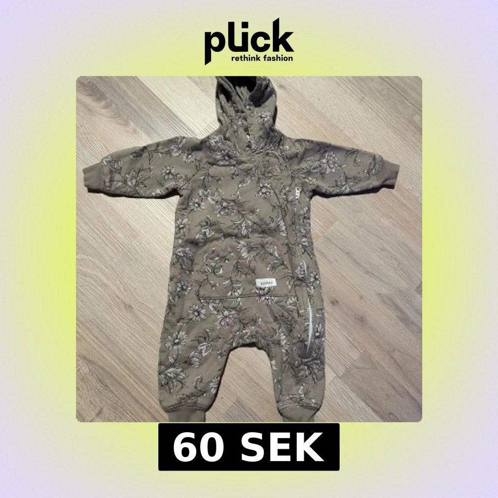 Säljer en beige babyoverall från Newbie med blommigt mönster i ljusa toner. Overallen har huva, ribbade muddar och en praktisk dragkedja på sidan. Perfekt för mysiga dagar och enkel att ta på och av.