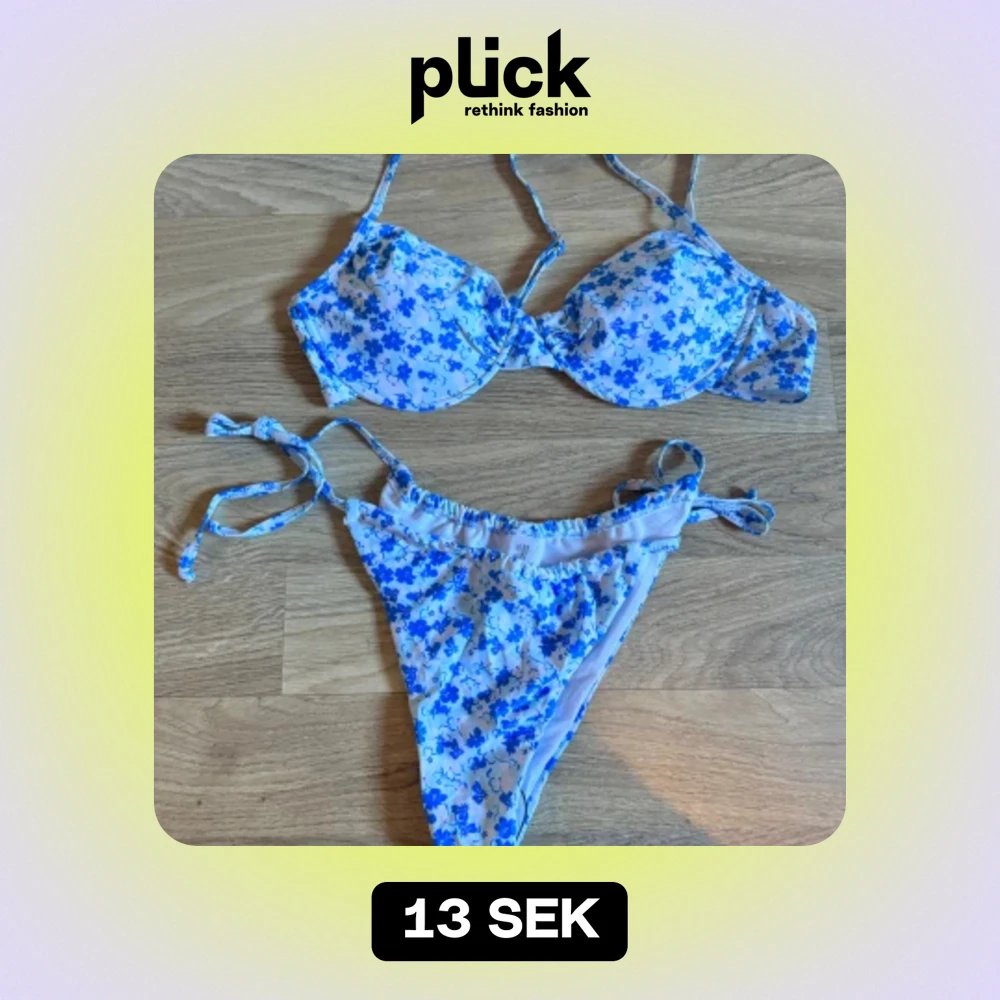 Säljer en superfin bikini i storlek XL. Den är vit med blå blommor och har knytband på både över- och underdel. Överdelen har vadderade kupor och en praktisk spänne i ryggen. säljes billigt då knäppet är lite kärvt, men den är aldrig använd !