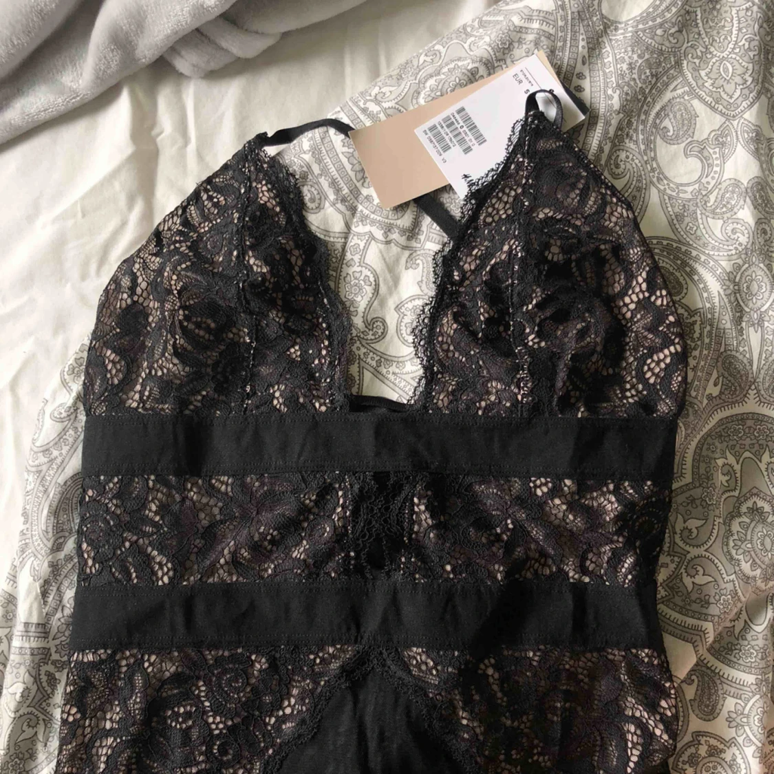 Säljer denna snygga spetsbody från H&M som har korsade band i ryggen. Super snygg men har tyvärr inte fått användning av den. Lapparna är kvar och den är bara testad med trosskyddet på