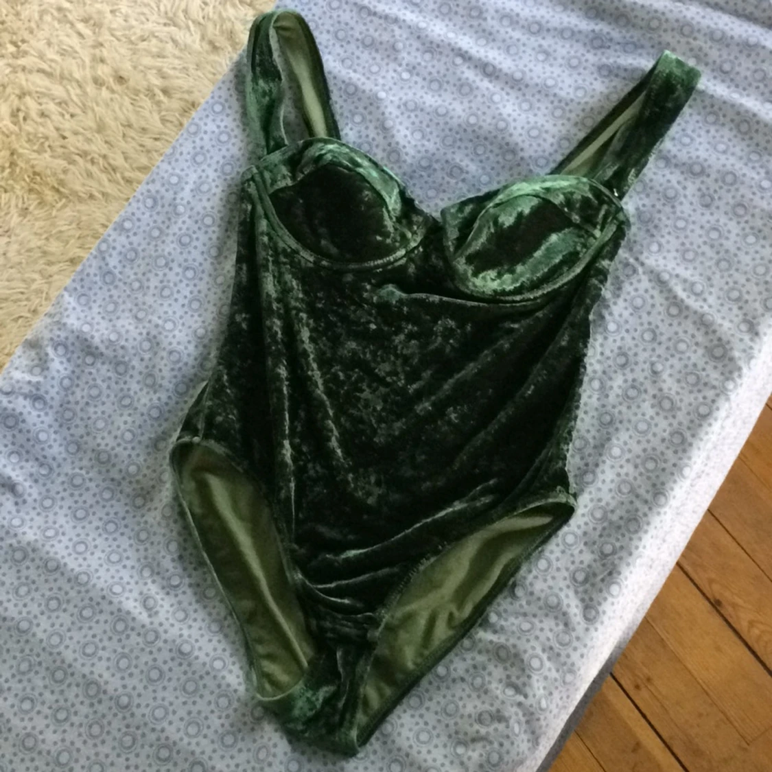 Smaragdgrön vintagebody i sammet. Märkt 36 men passar 36-38/ b/c-kupa. Sparsamt använd och i mycket gott skick!