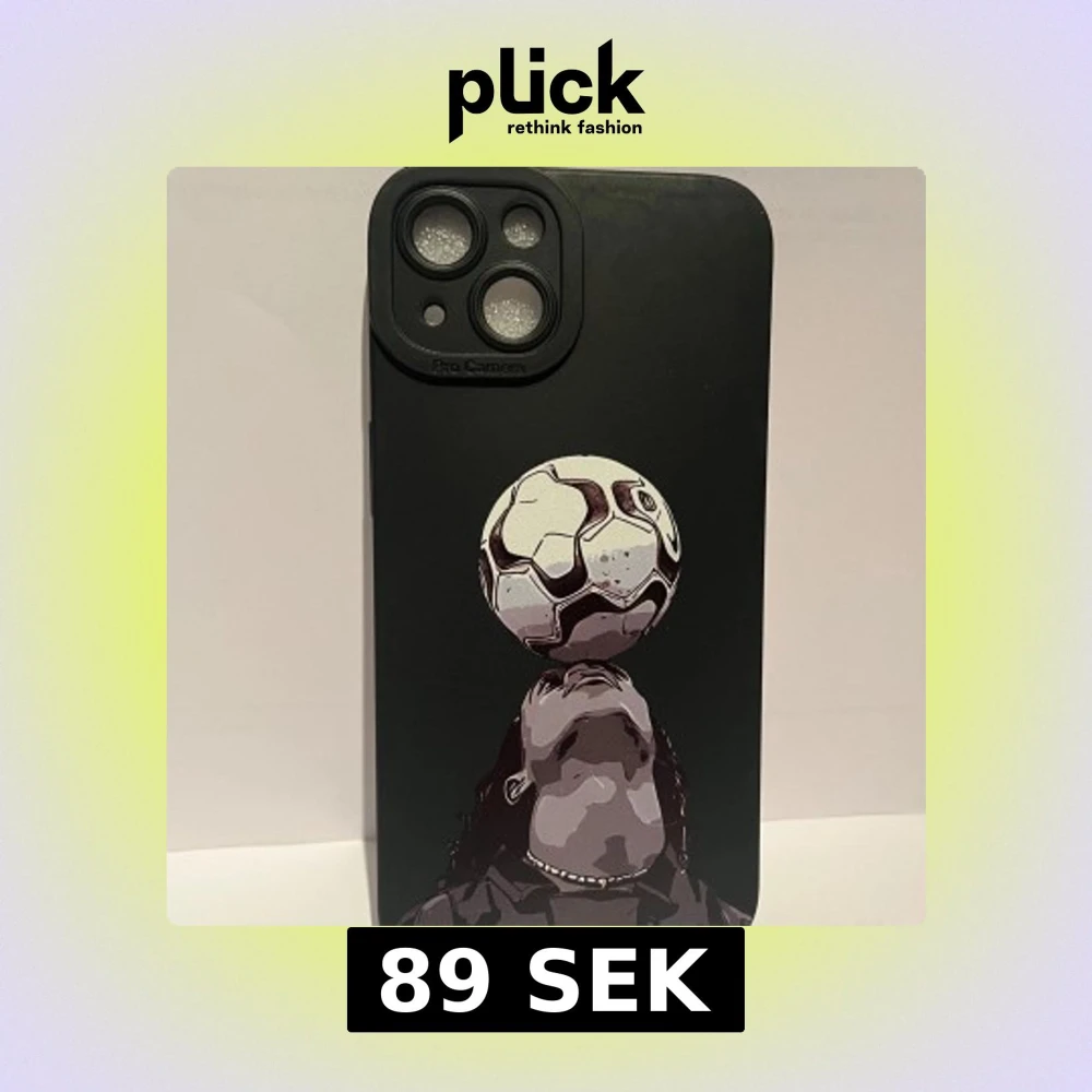 Snyggt svart mobilskal med coolt tryck av en person som balanserar en fotboll på huvudet. Skalet har en matt finish och motivet är i grå, vit och svart ton. Perfekt för dig som älskar fotboll och vill ha en unik look på mobilen.