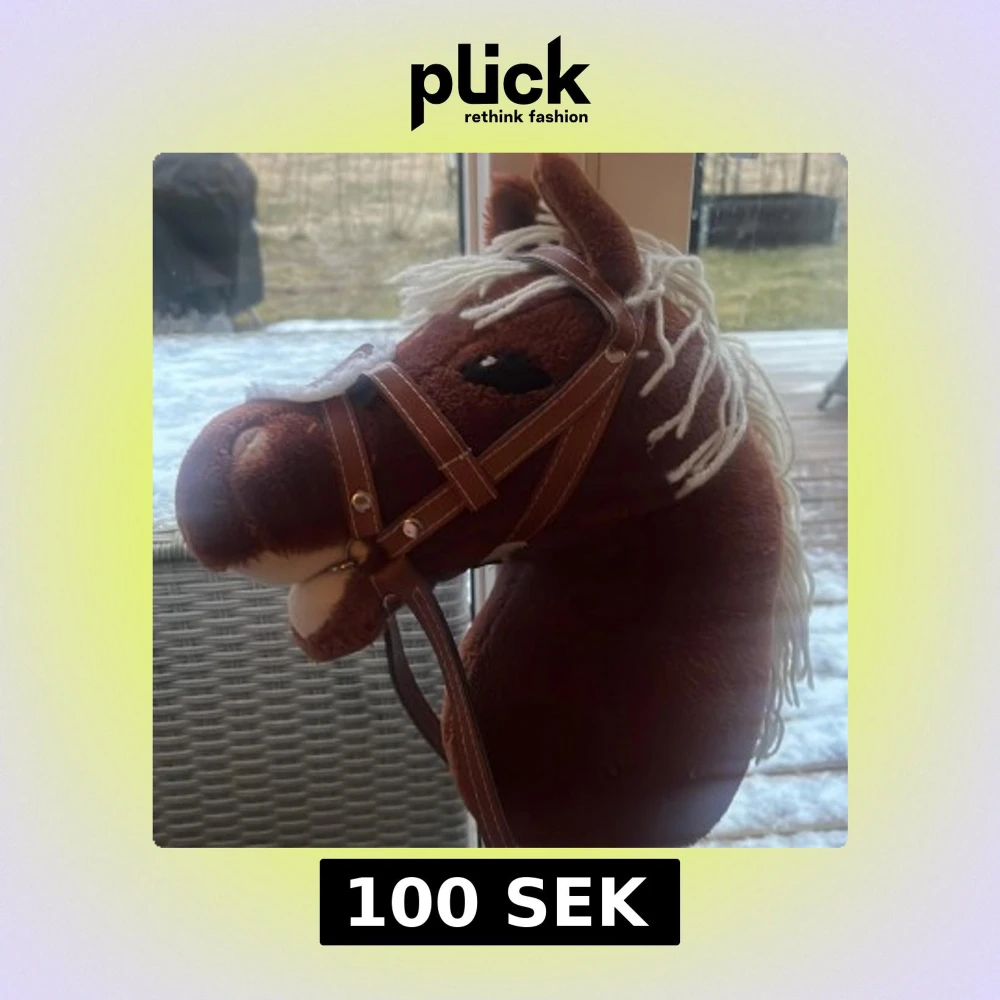 Charmig brun käpphäst med vit man och detaljerad brunt träns. Perfekt för lek och äventyr. Hästen har en mjuk päls och realistiska detaljer som gör den till en favorit hos barn.
