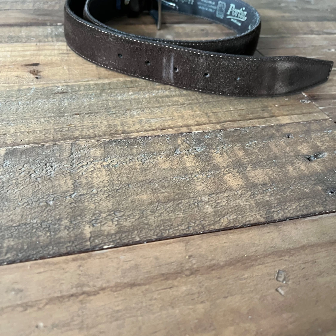 Säljer ett snyggt brunt bälte från Portic. Tillverkat i mocka med en stilren design och flera justerbara hål. Perfekt för att ge din outfit en extra touch. Bältet har en klassisk spänne i metall.