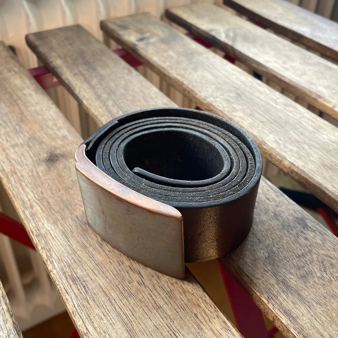 Snyggt brunt bälte i äkta skinn från H&M med en stilren, rektangulär metallspänne i silverfärg. Bältet har klassisk design och flera hål för justerbar passform. Perfekt accessoar för att lyfta din outfit.