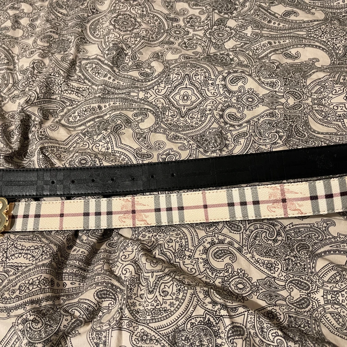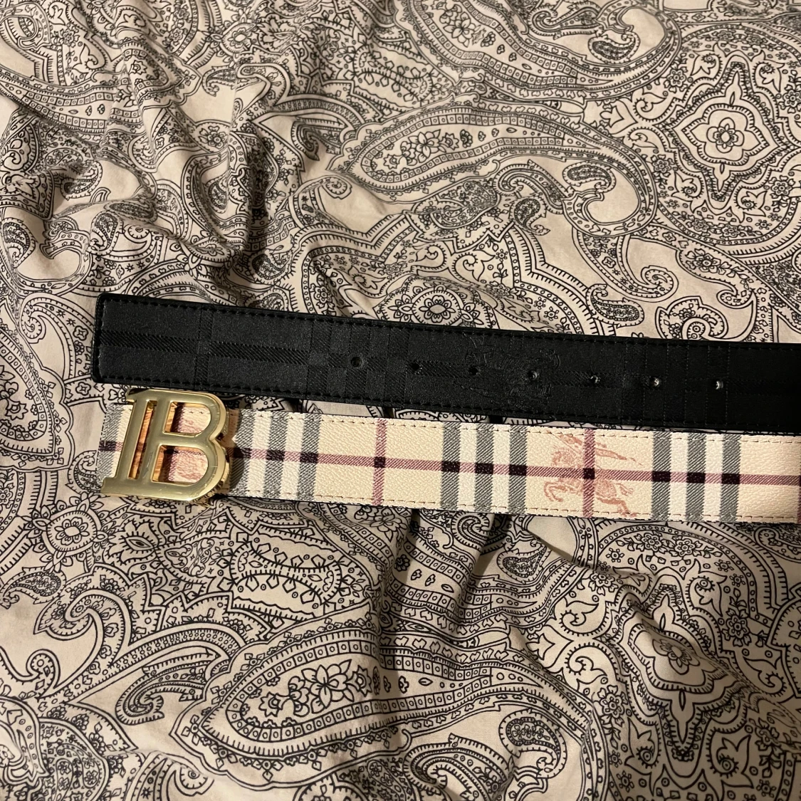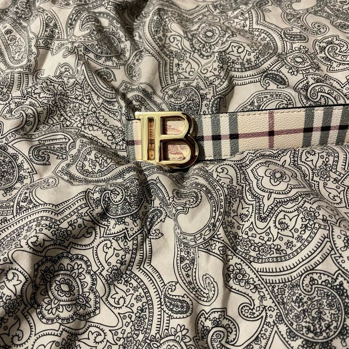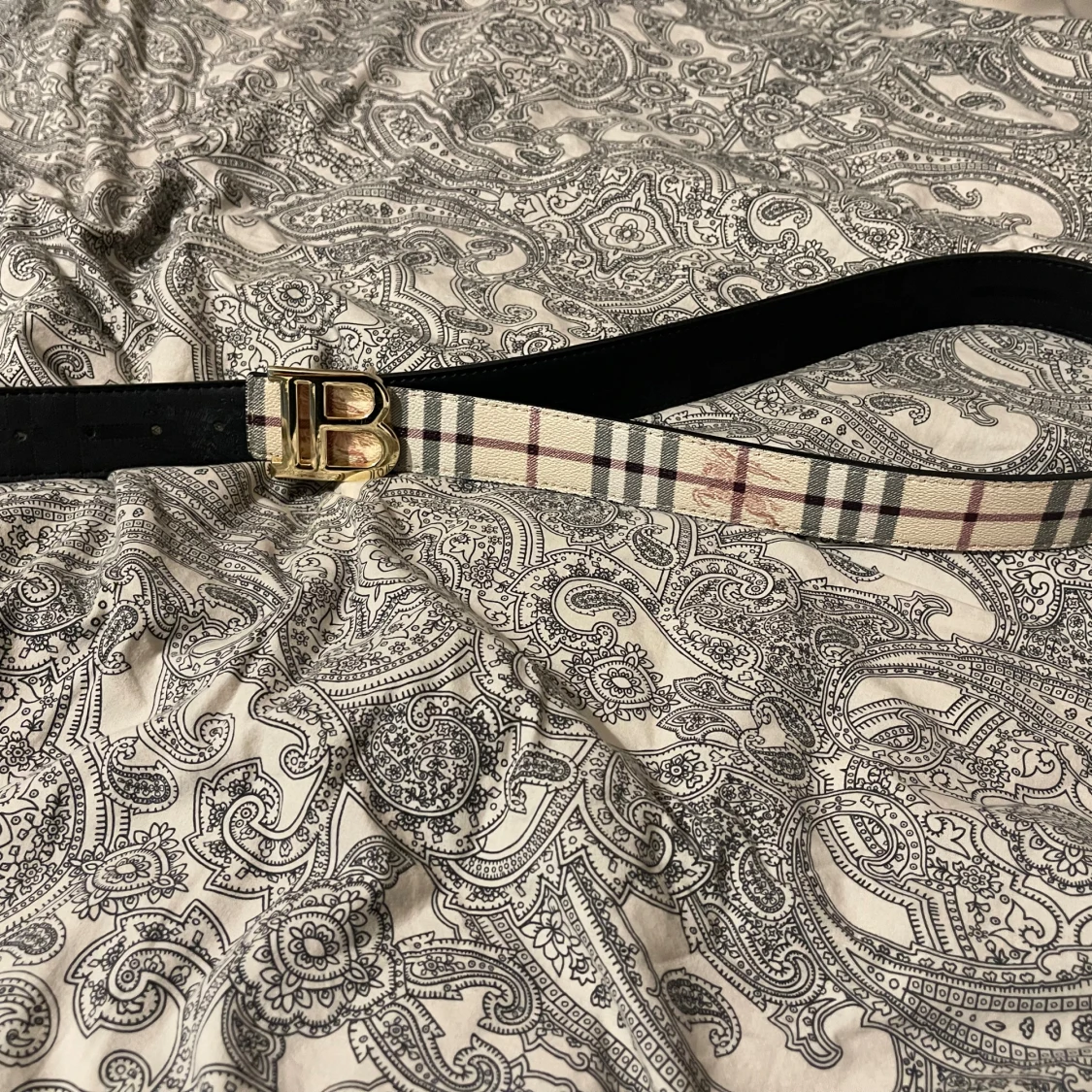 Burberry rutigt bälte med guldspänne