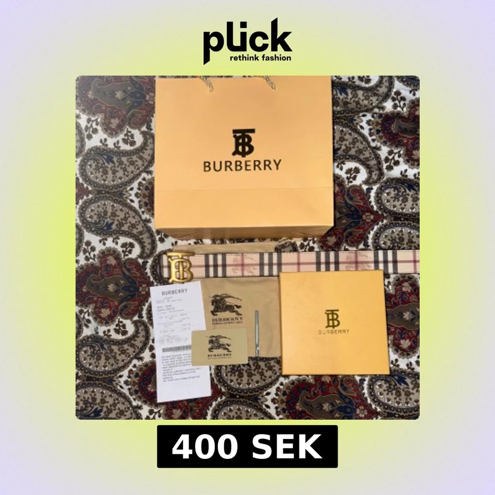 Säljer ett snyggt Burberry bälte i klassiskt beige med rutigt mönster och guldigt TB-spänne. Bältet har den ikoniska Burberry-looken och levereras med originalförpackning, dustbag och certifikat. Perfekt för dig som vill ha en statement-accessoar.