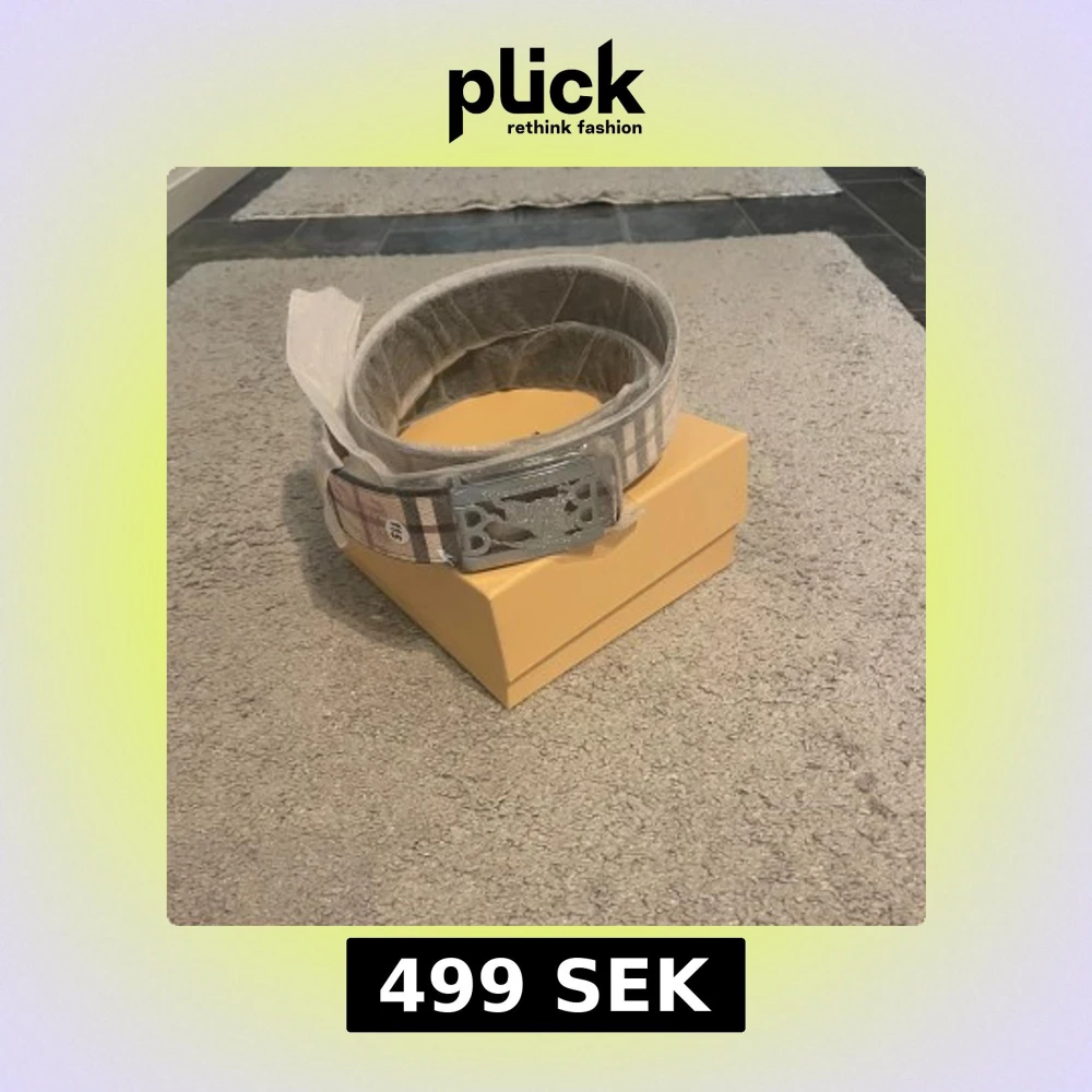 Säljer ett snyggt rutig bälte från Burberry med klassiskt mönster i beige, grått och brunt. Bältet har en stilren silverfärgad spänne med Burberrys logotyp. Perfekt för att lyfta din outfit med en lyxig touch.