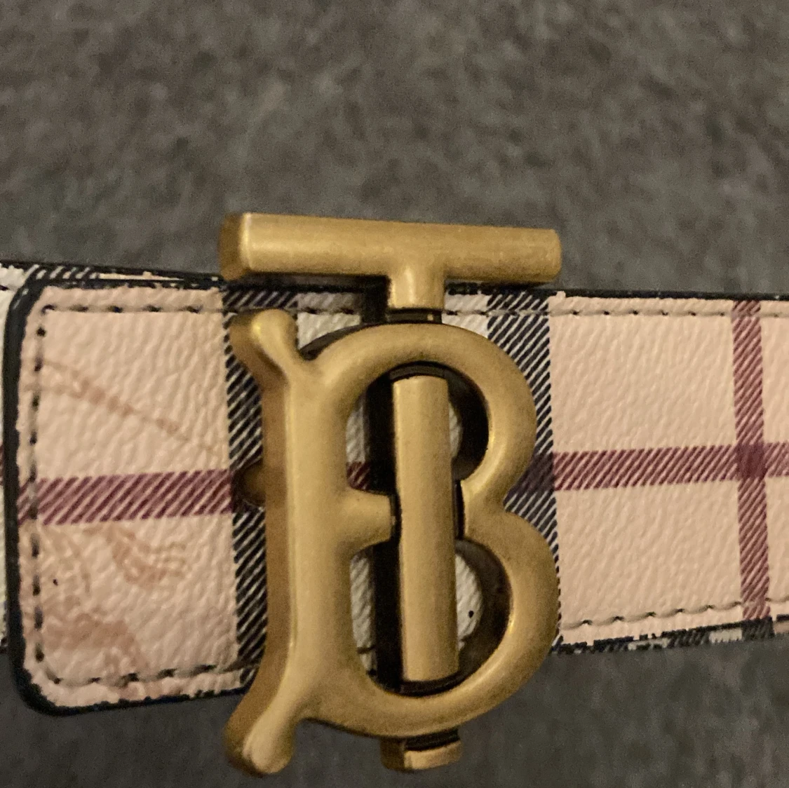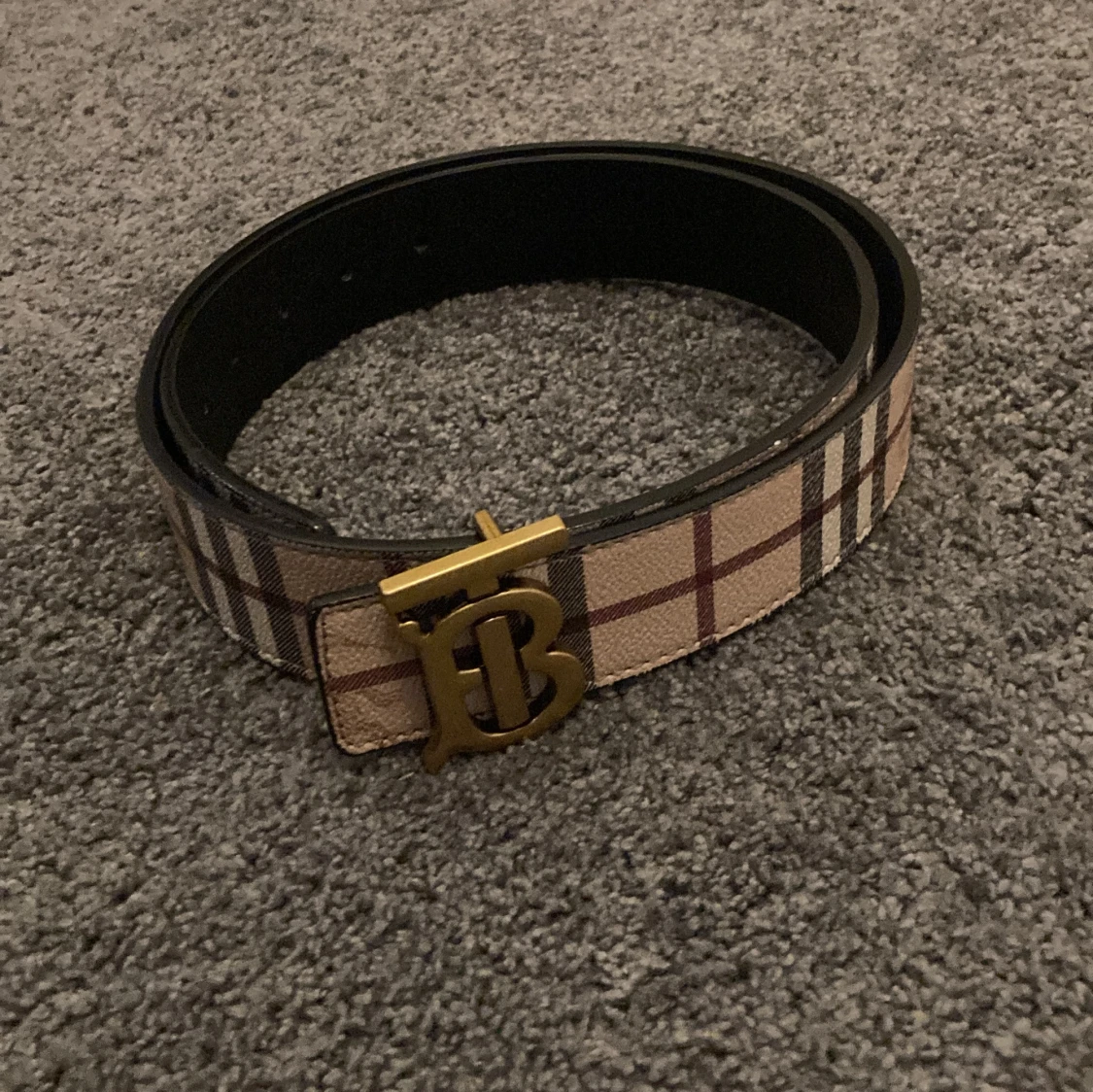 Burberry bälte som endast har använts ett fåtal gånger. Inga problem alls med det och du får även med dustbagen och hålslagaren till bältet. Det går att vända på bältet som på bilderna. Precis är absolut justerbart.